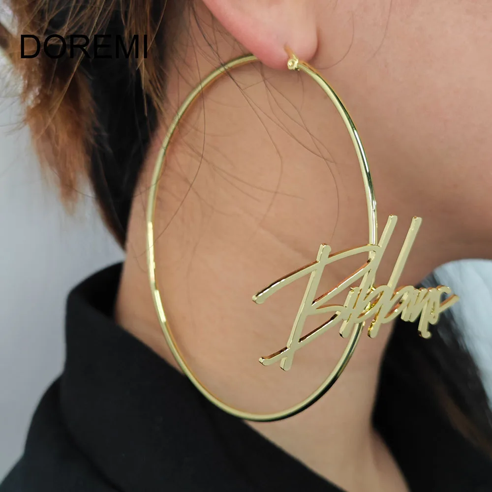 DOREMI مخصص اسم القرط مع الفولاذ المقاوم للصدأ رسالة مستديرة دروبشيبينغ اسم مخصص اسم أقراط الإناث المضادة للحساسية مجوهرات