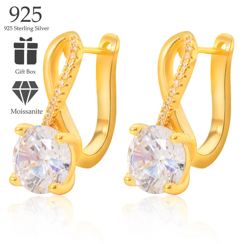 925 فضة، أقراط إنفينيتي مويسانيتي، أقراط نسائية، مصنوعة بدقة مطلية بالذهب عيار 18 قيراط 925 فضة جراميج: 5 جرام ماي