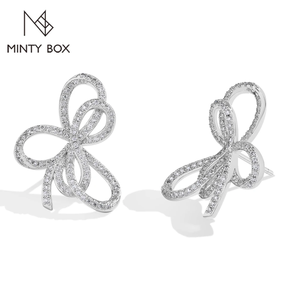 MINTYBOX Bowknot مويسانيتي وأقراط للنساء S925 فضة مختبر الماس القرط الفاخرة المشاركة مجوهرات هدية