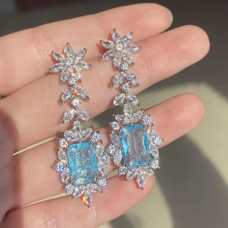 Uilz الفاخرة ساحة الأزرق مكعب زركونيا إسقاط أقراط للنساء مزاجه القرط العروس الزفاف مجوهرات الخطوبة