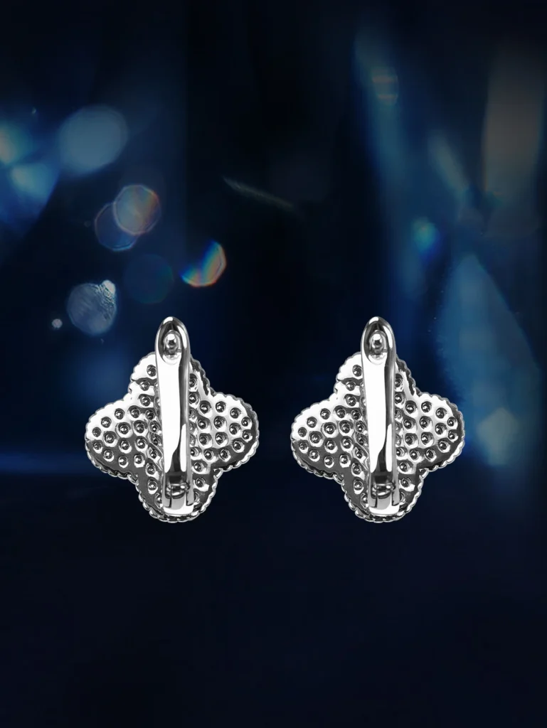 حلق بمشبك بأربع أوراق البرسيم أقراط مويسانيتي كاملة للنساء حلق من الفضة الإسترليني عيار 925 مع شهادة Gra