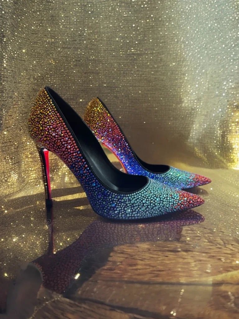 المرأة كامل الماس أحذية عالية الكعب حجر الراين أشار تو كعب ستيليتو بلينغ بلينغ العلامة التجارية الفاخرة الملونة كريستال أحذية الزفاف