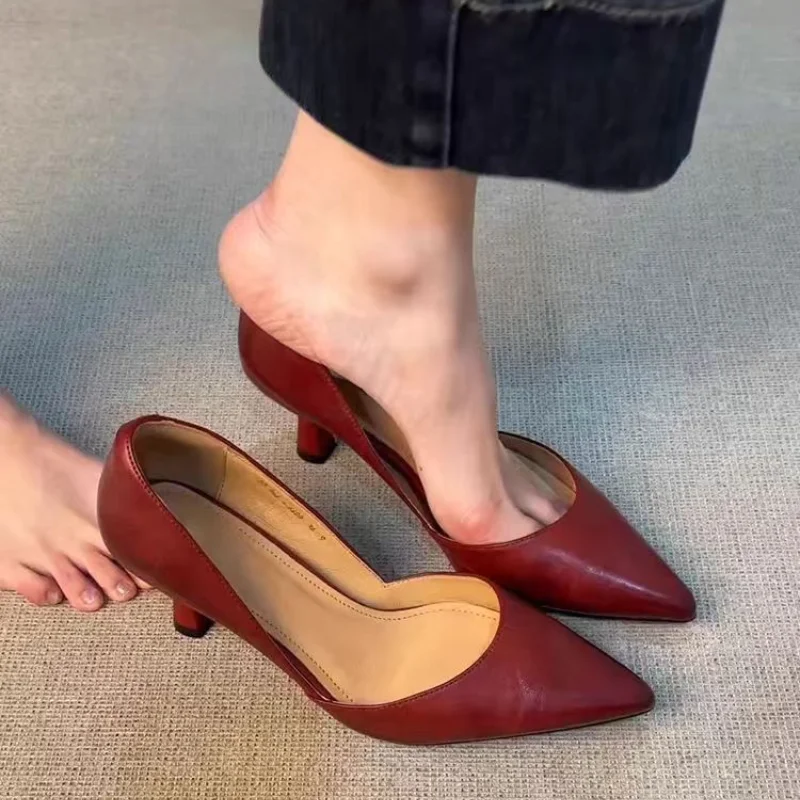 النساء أشار تو أحذية عالية الكعب الصيف جديد النساء الصنادل 2025 الفاخرة مثير العمل أحذية من الجلد العلامة التجارية فستان مضخات الأحذية Mujer