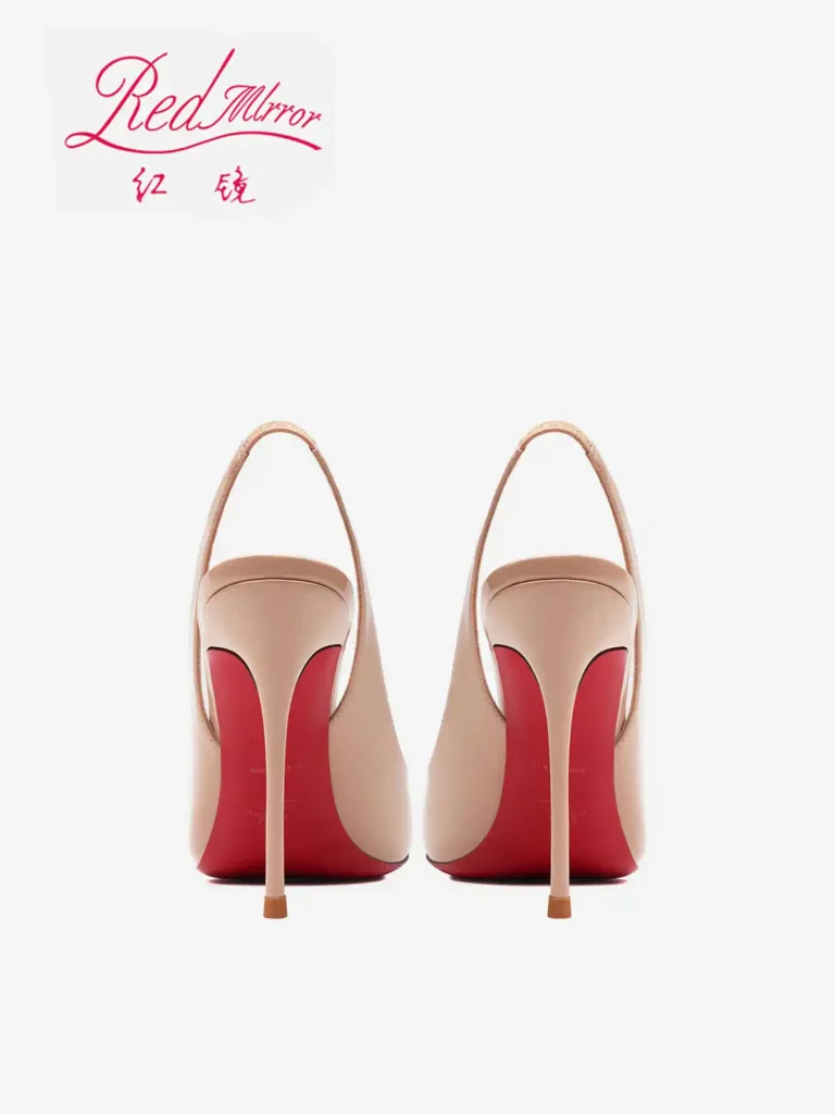 صنادل بكعب قيعان حمراء لامعة لون عاري فاخر مجوف 2025 جديد أنيق بكعب عالٍ مثير أحذية خفيفة للسيدات أحذية نسائية