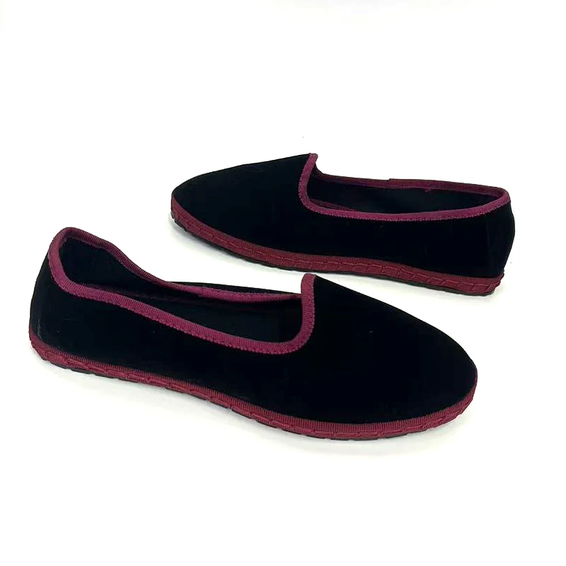 أحذية مسطحة سوداء مخملية للنساء سهلة الارتداء ملابس خروج غير رسمية أحذية بدون كعب بغرز يدوية من الفلانيل بمقدمة مستديرة أحذية ماري جينس للسيدات