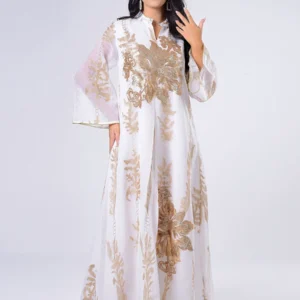 فستان عباية مطرز بالترتر من Siskakia للنساء قفطان مغربي تركي جلابية عربية أبيض إسلامي رداء عرقي 2023 عيد جديد