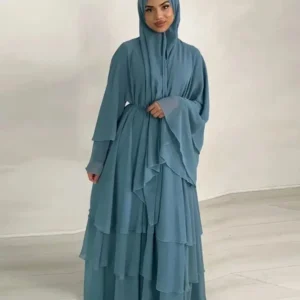 فستان حفلات العيد من الموسلين عباية نسائية مع وشاح للرأس سترة طويلة متدرجة هندية قفطان عباية أنيقة ماكسي فيستدوس لارجو 2025