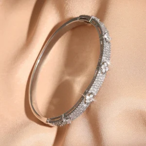 ZAKOL فاخر كامل لامعة تشيكوسلوفاكيا أربع أوراق زهرة تصميم سوار مفتوح للنساء قسط حفل زفاف مجوهرات هدية عيد ميلاد