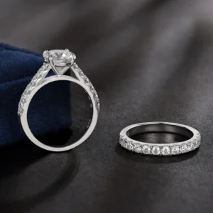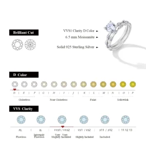 Newshe معتمد 2Ct مويسانيتي خاتم الزواج مجموعة للنساء 925 فضة بريليانت قطع مستديرة خواتم الخطبة الفاخرة
