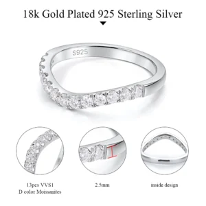 خاتم زفاف منحني من M-JAJA من حجر الموزانيت نصف الأبدي من الفضة الإسترلينية عيار 925، وزن 0.39 قيراط، D VVS1 Lab، خواتم ألماس للنساء