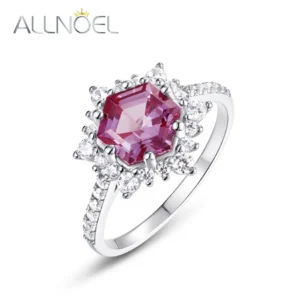 ALLNOEL 1.78ct الكسندريت 100% 925 خاتم فضة للمرأة زهرة مجوهرات الذكرى هدية عيد ميلاد يونيو جوهرة الميلاد بالجملة
