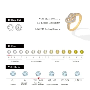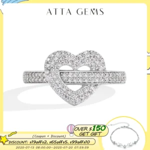 ATTAGEMS DVVS1 خاتم مويسانيتي كامل 925 فضة 18K مطلية بالذهب شكل قلب للنساء عطلة هدايا كلاسيكية غرامة مجوهرات