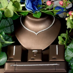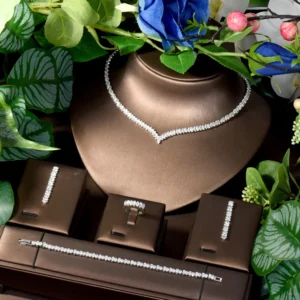 4 قطعة مجموعات مجوهرات الزفاف زركونيا مكعب للنساء حفلة فاخرة دبي نيجيريا تشيكوسلوفاكيا كريستال مجموعات مجوهرات الزفاف
