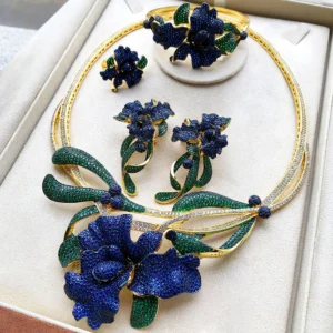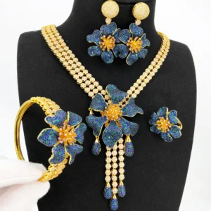 Missvikki جديد سحر الزهور العصرية الفاخرة 4 قطعة قلادة طويلة الإسورة أقراط خاتم مجموعة للنساء مجوهرات الزفاف الزفاف