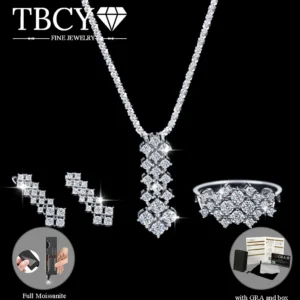 TBCYD فاخر مويسانيتي كامل الماس ثلاث قطع مجموعات للنساء 925 الفضة المعين أقراط الطوق قلادة مساء مجوهرات هدية