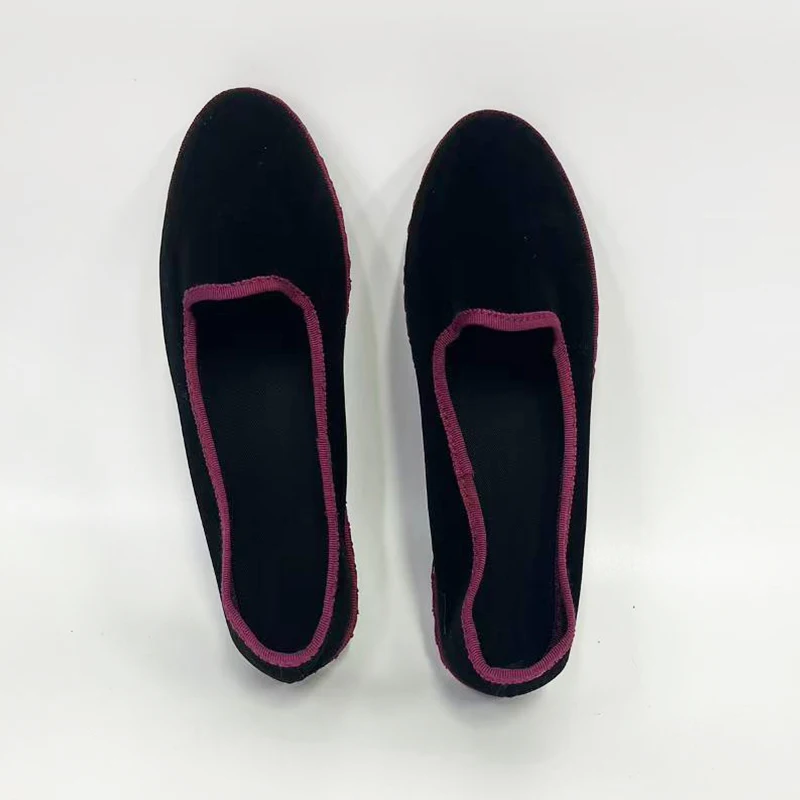 أحذية مسطحة سوداء مخملية للنساء سهلة الارتداء ملابس خروج غير رسمية أحذية بدون كعب بغرز يدوية من الفلانيل بمقدمة مستديرة أحذية ماري جينس للسيدات