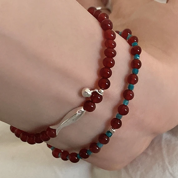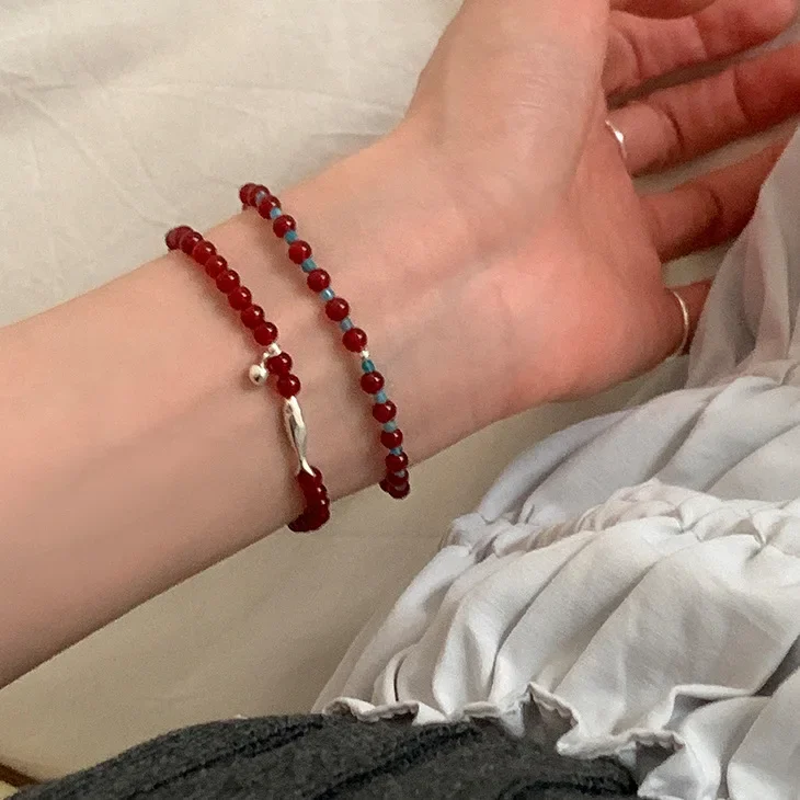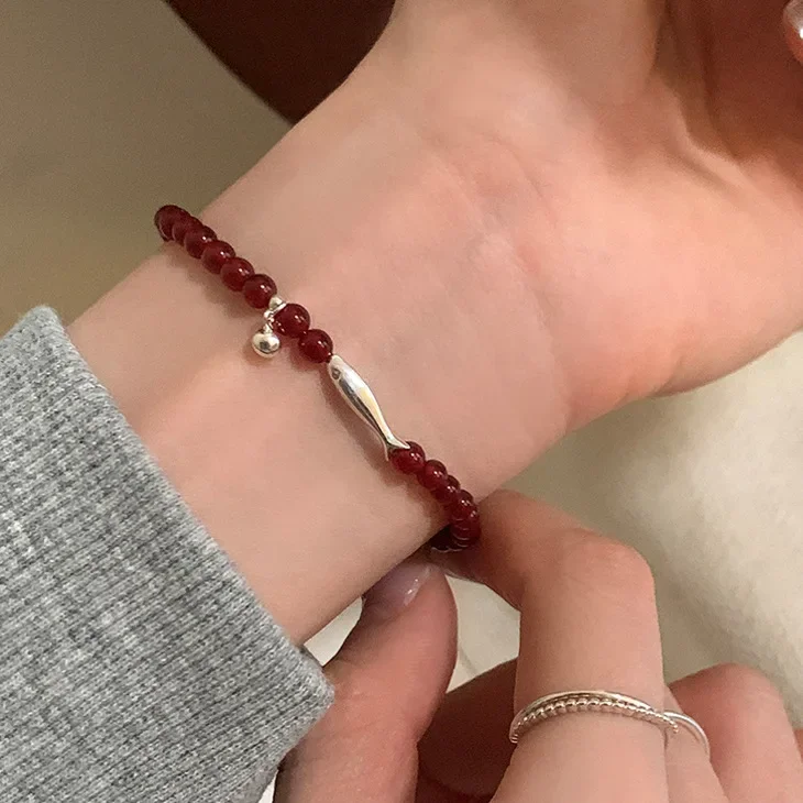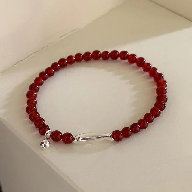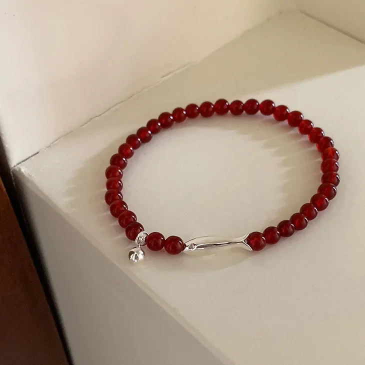 أساور فضية عيار 925 حقيقية مزينة بخرز من العقيق الأحمر على شكل سمكة، للنساء، مجوهرات أنيقة بتصميم حيواني لطيف، إكسسوارات فاخرة وخفيفة الوزن