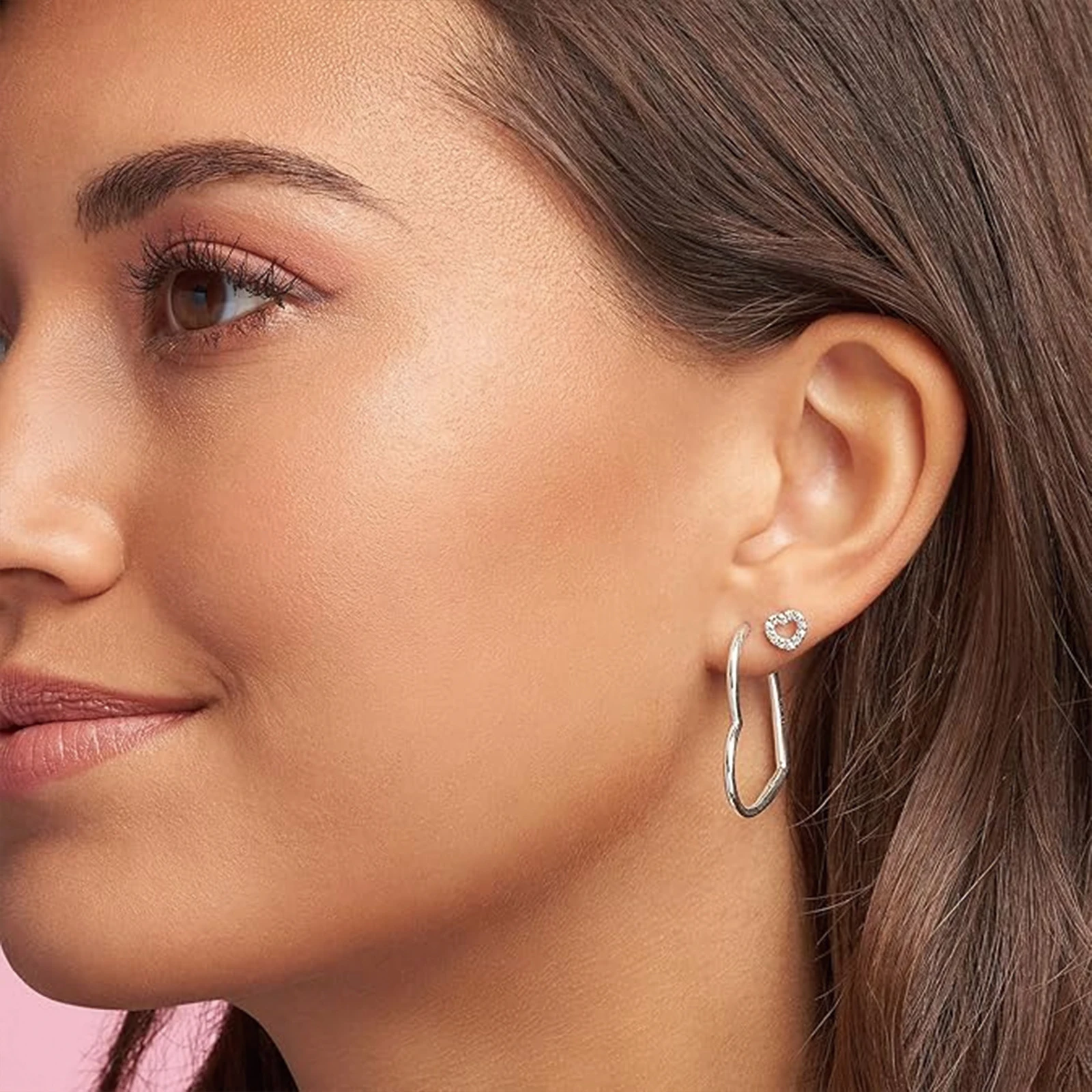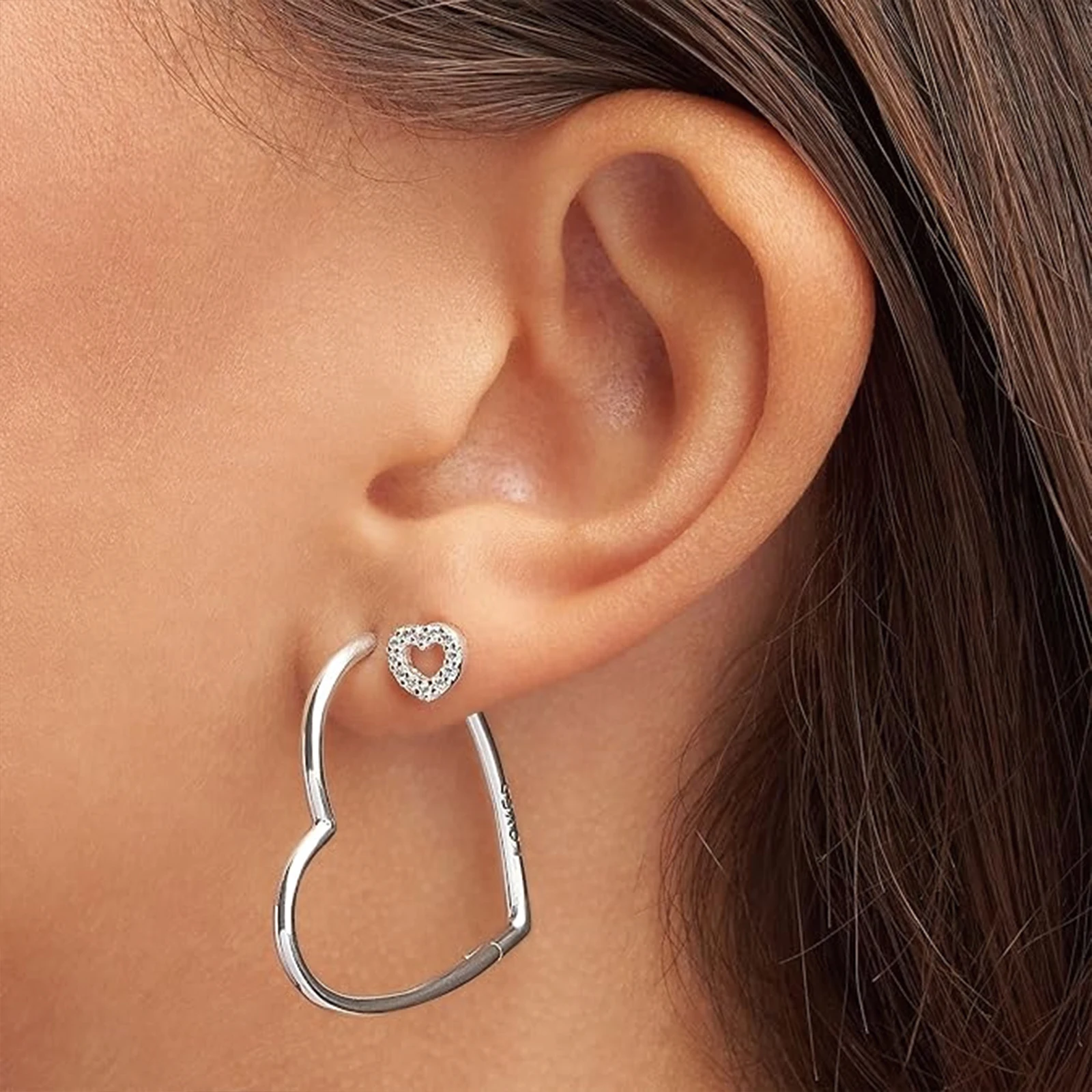 أقراط صورة ظلية على شكل قلب من الفضة عيار 925، أقراط نسائية، أقراط على شكل قلب أنيقة وحساسة وخفيفة الوزن منقوشة من أجل Bo