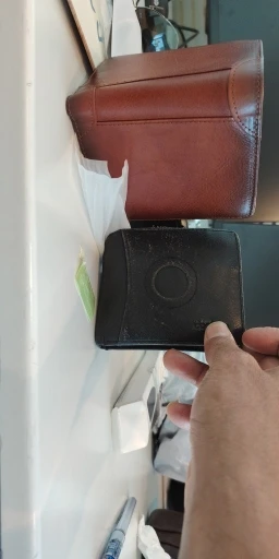 إنها ليست حقًا جلد صناعي، بل هي محفظة فينيل لامعة رخيصة.