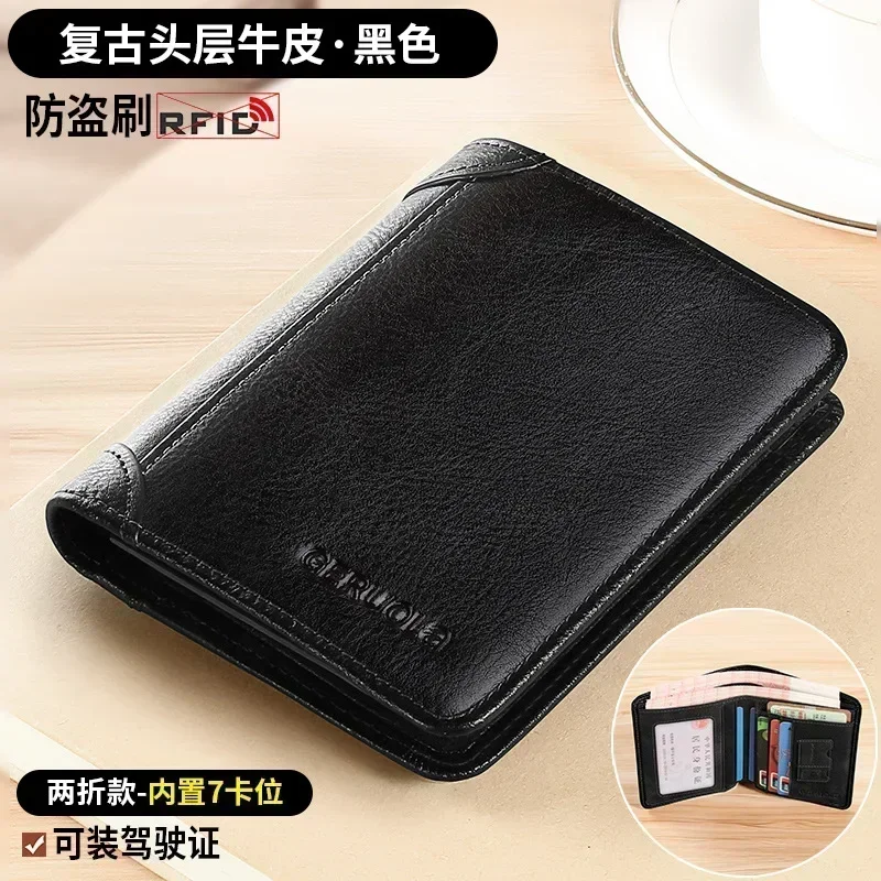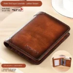 الرجال المحفظة جلد طبيعي تتفاعل حجب محفظة ثلاثية الطي خمر رقيقة قصيرة متعددة الوظائف معرف حامل بطاقة الائتمان الذكور محفظة المال