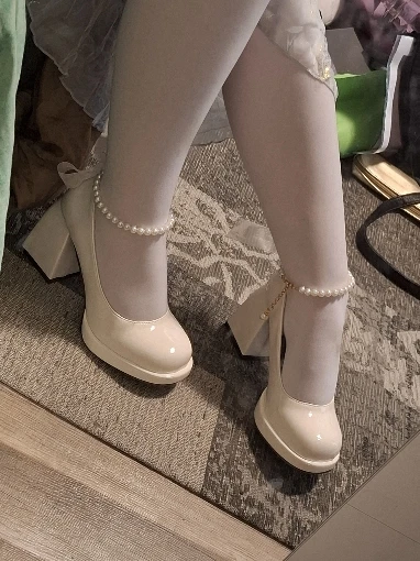 Luxury Women High Heels Elegant Bow Square Toe Women Mary Jane Shoes Pearl Lace Party Wedding Shoes Fashion Platform Women Pumps