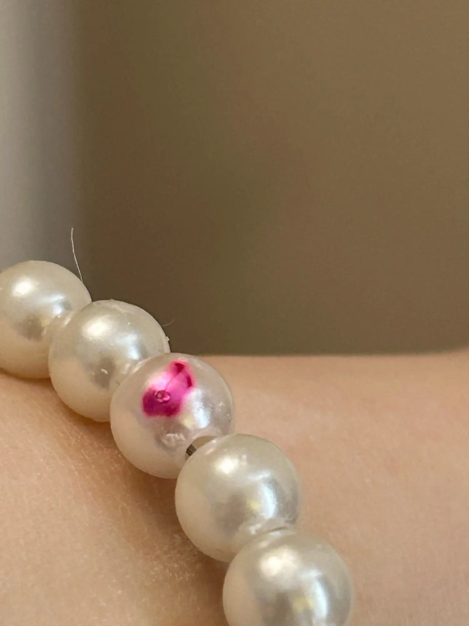 إنه جميل ولكن هناك بعض اللون الوردي المصبوغ على اللؤلؤ.