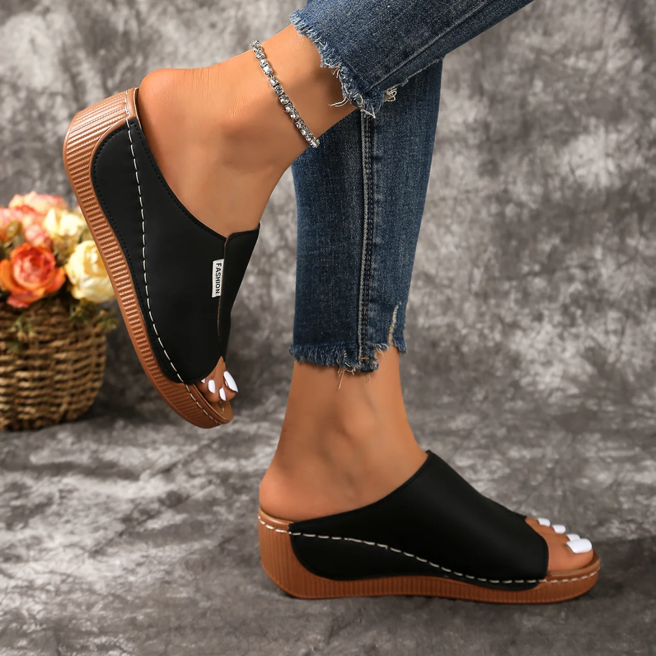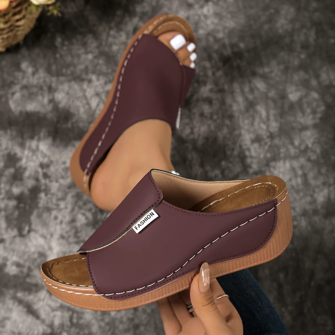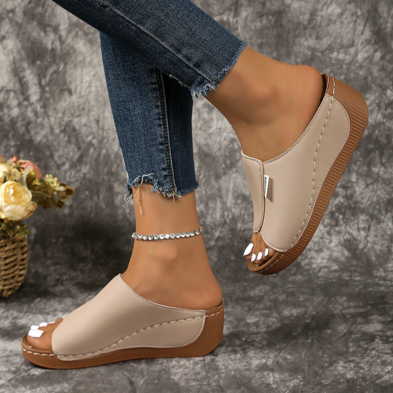 النساء إسفين النعال مريحة مشبك أحذية امرأة صيف 2025 جديد شباشب على الموضة المفتوحة تو تنفس الصنادل الشرائح النساء