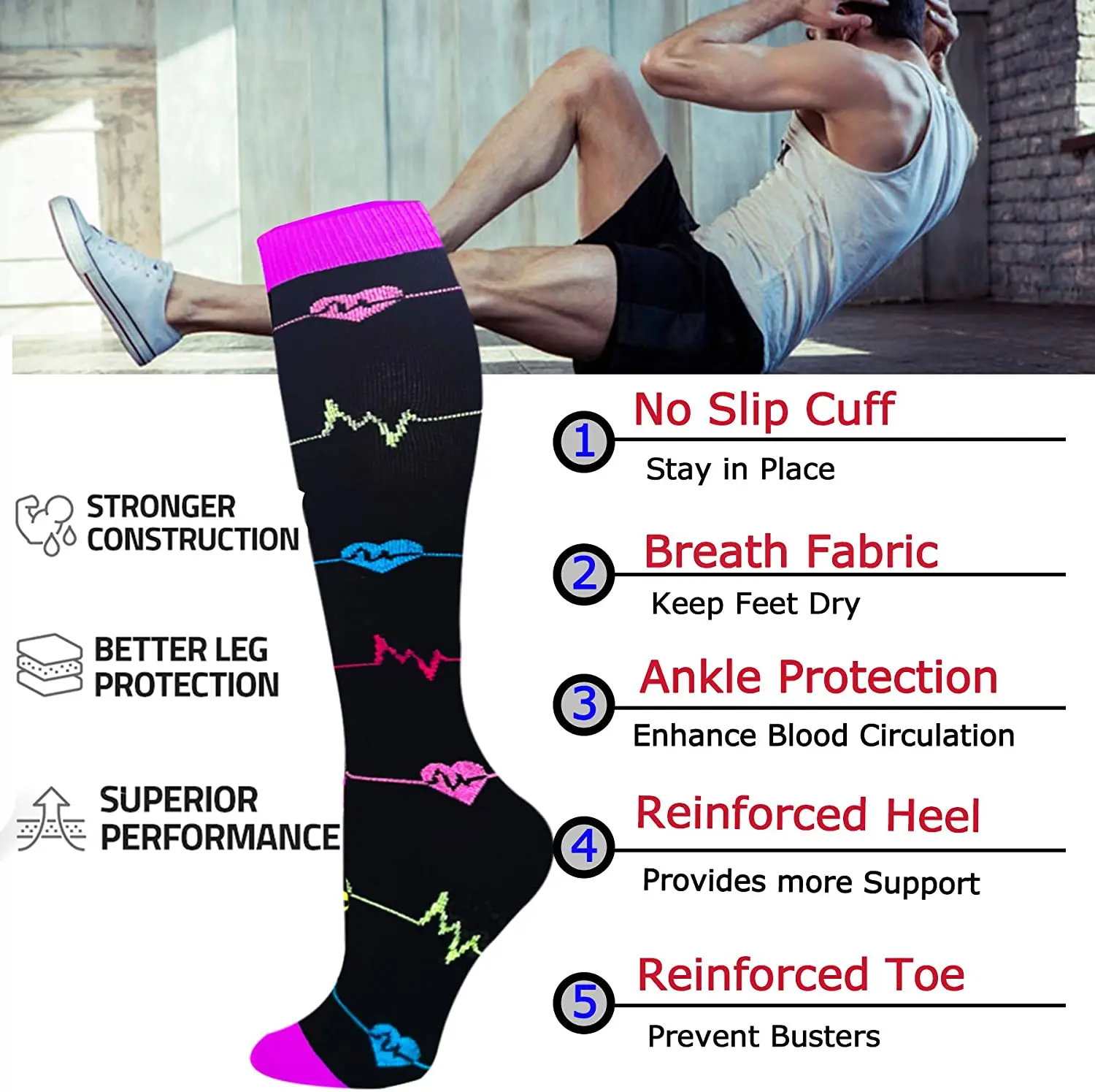 جوارب ضغط رياضية تصل إلى الركبة، 6/7 أزواج، للنساء والرجال، مناسبة للجري والماراثون وركوب الدراجات، لعلاج الوذمة والسكري والدوالي.