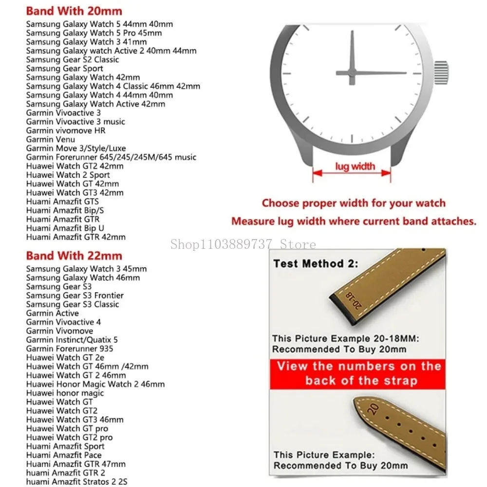 مقاس سوار الساعة: 18 مم، 20 مم، 22 مم