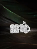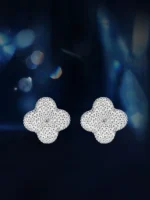 حلق بمشبك بأربع أوراق البرسيم أقراط مويسانيتي كاملة للنساء حلق من الفضة الإسترليني عيار 925 مع شهادة Gra