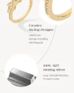 التغليف يشمل: علبة مجوهرات/حقيبة فلانيل/قطعة قماش للتنظيف/أداة تعديل الخاتم. معايير الجودة: قبل الشحن، سيقوم قسم مراقبة الجودة بفحص كل حجر. وزن الخاتم/القطعة: تقريبًا. 3.4 غرام