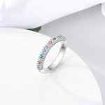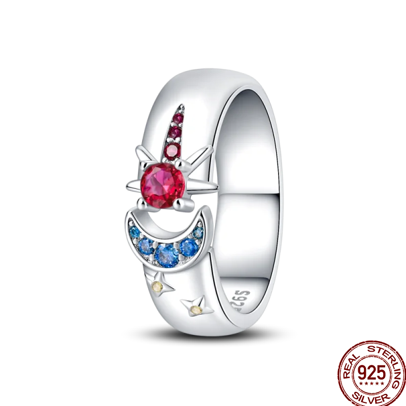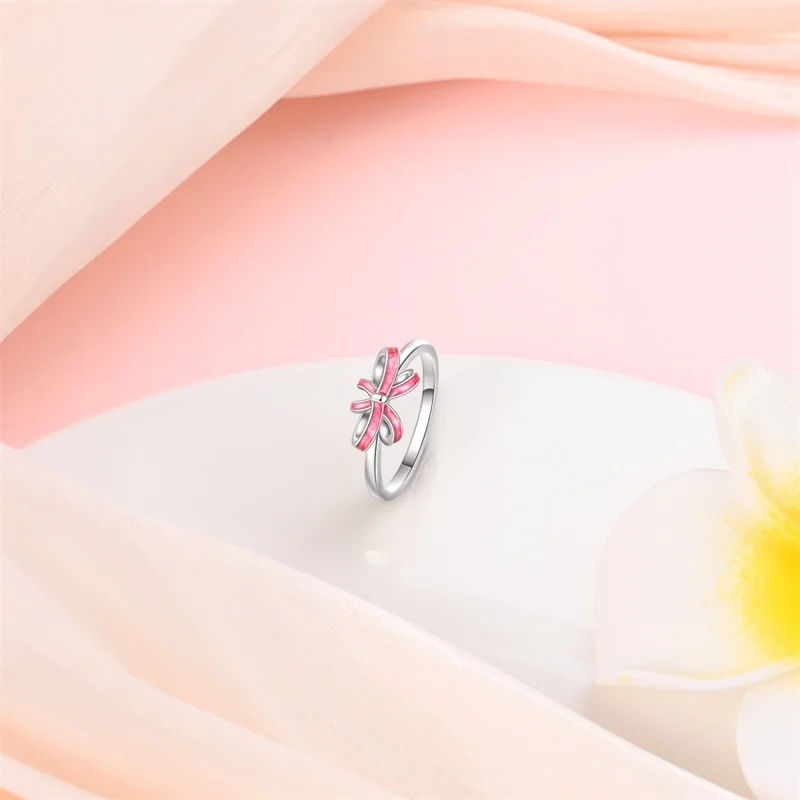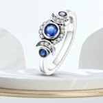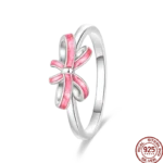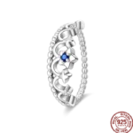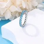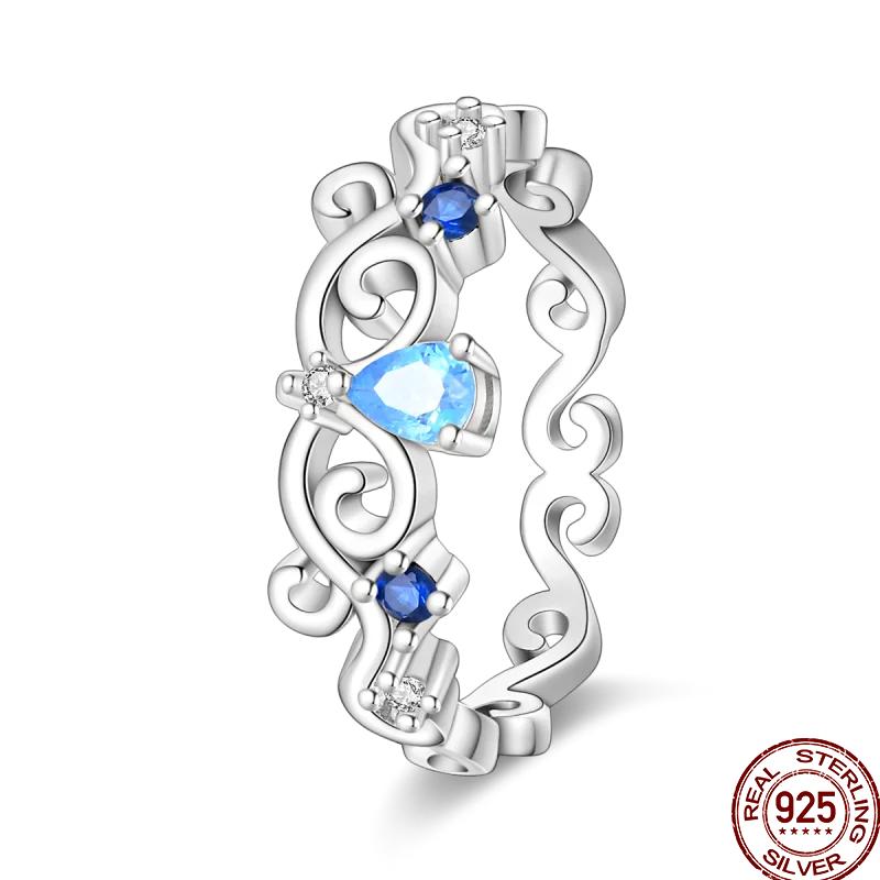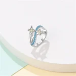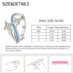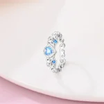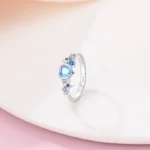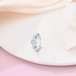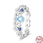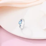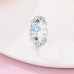 خاتم نسائي من الفضة الإسترليني عيار 925، مزين بفيونكة أنيقة، مرصع بحجر الزركون الأزرق البارد على شكل قلب ونجمة، خاتم زفاف رومانسي