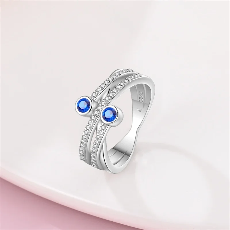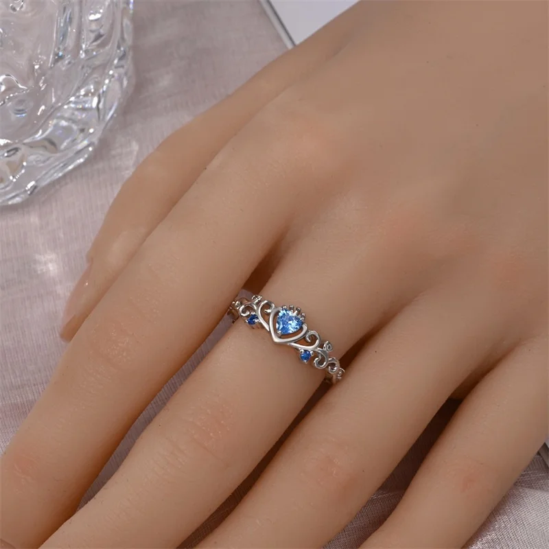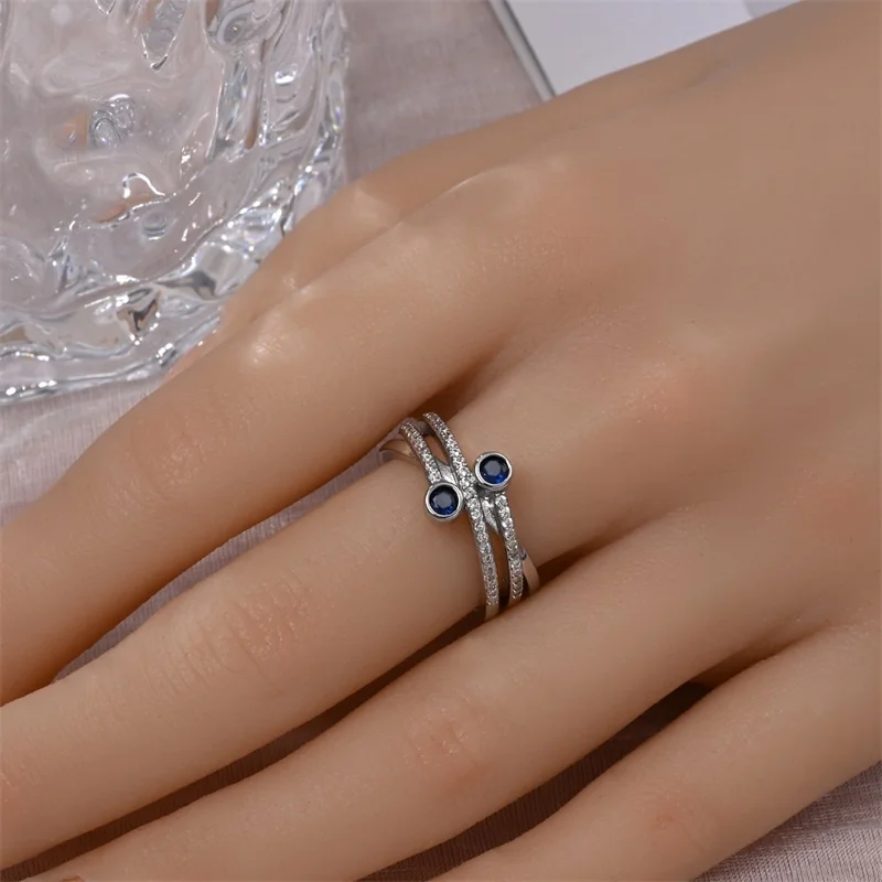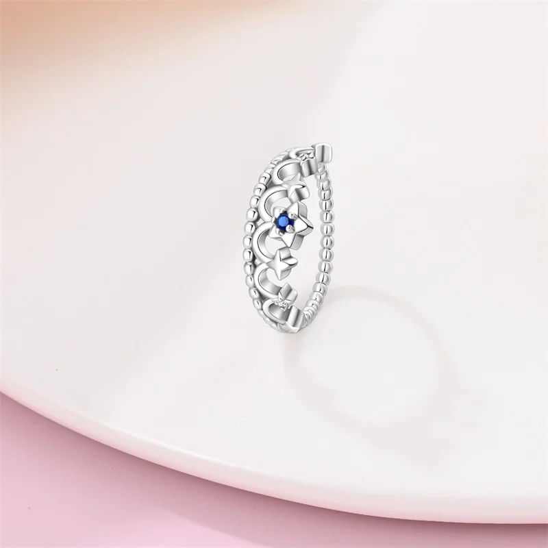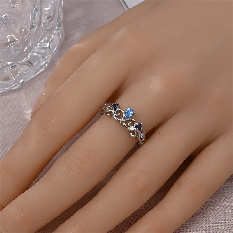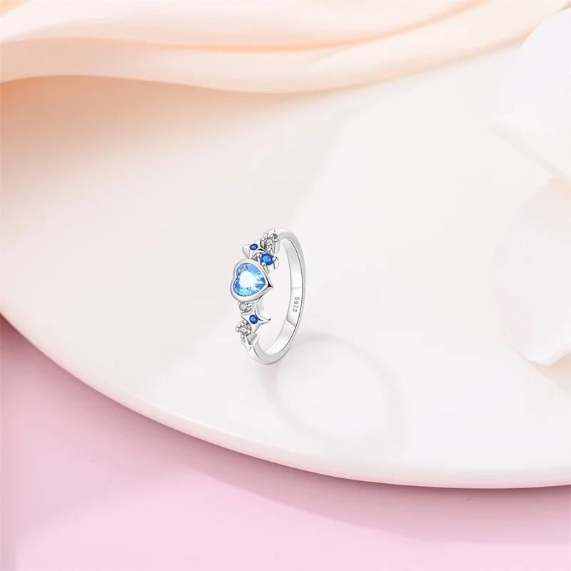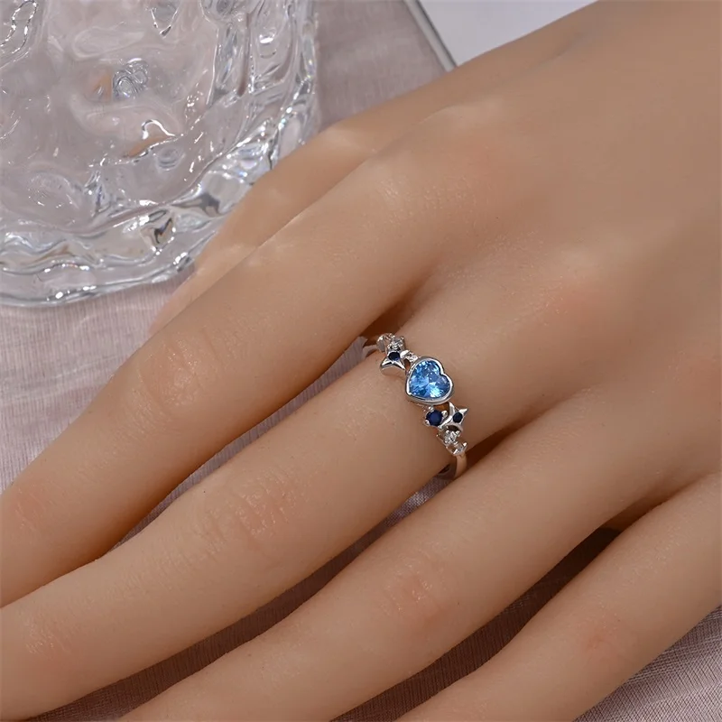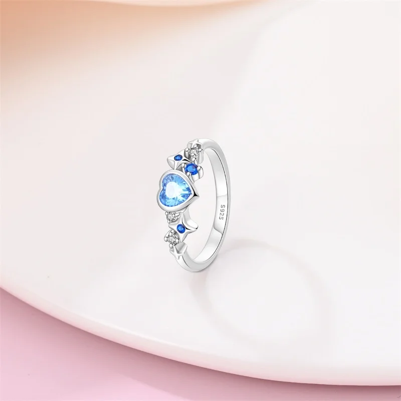 خاتم نسائي 925 فضة حلو القوس الباردة الأزرق على شكل قلب الزركون على شكل نجمة خاتم الزفاف مجوهرات رومانسية