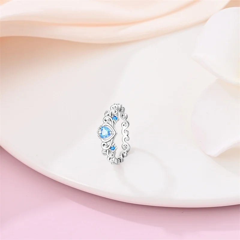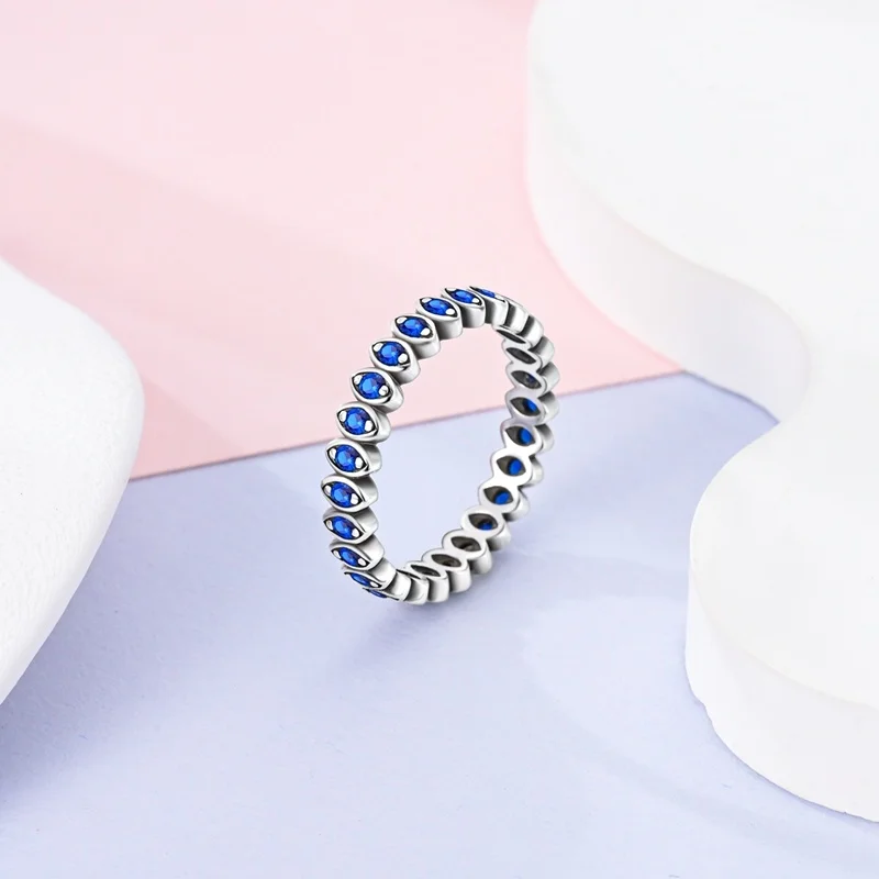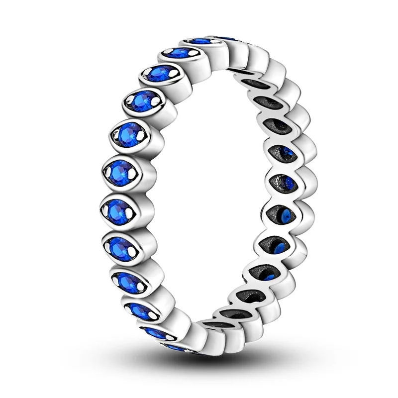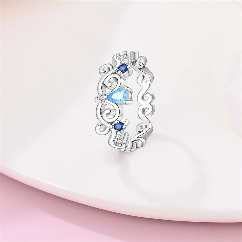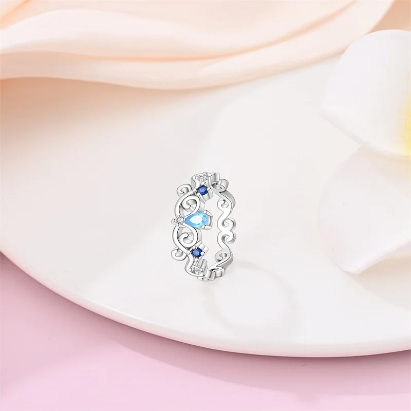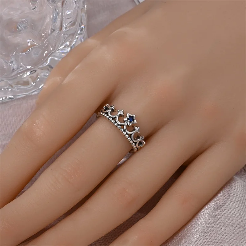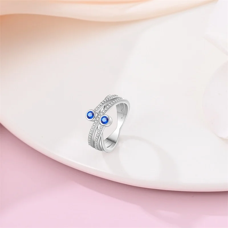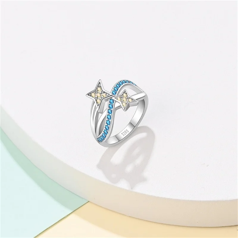 خاتم نسائي 925 فضة حلو القوس الباردة الأزرق على شكل قلب الزركون على شكل نجمة خاتم الزفاف مجوهرات رومانسية