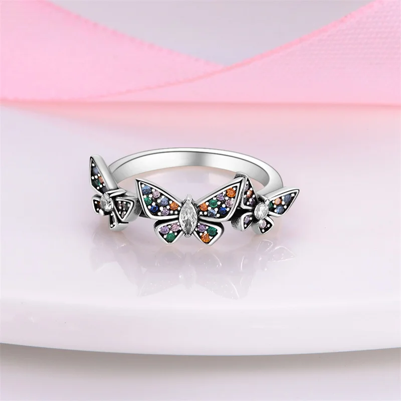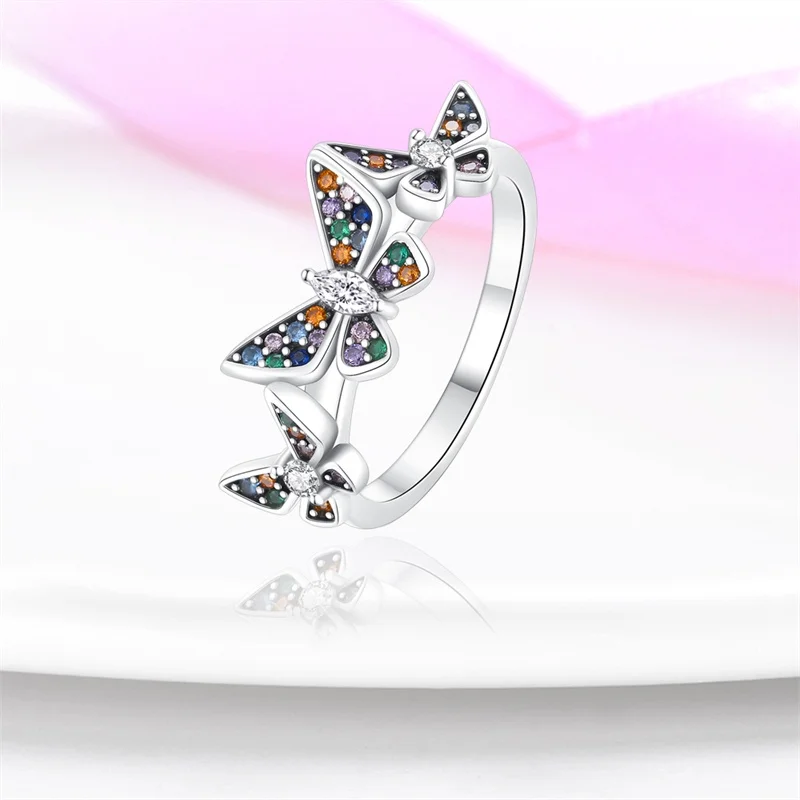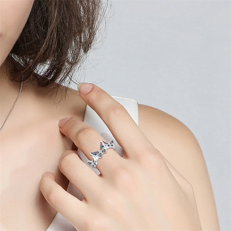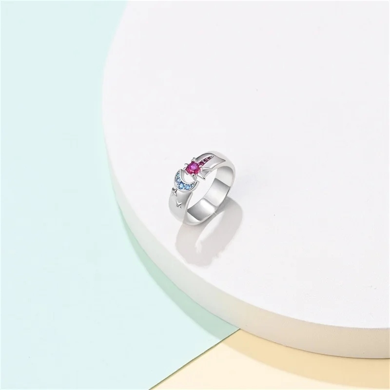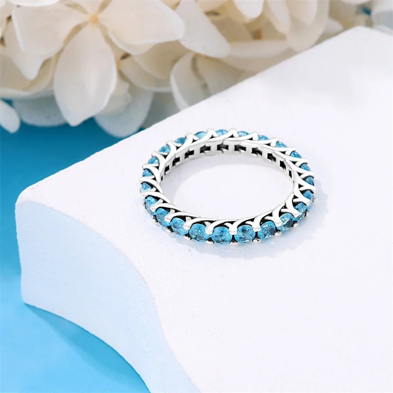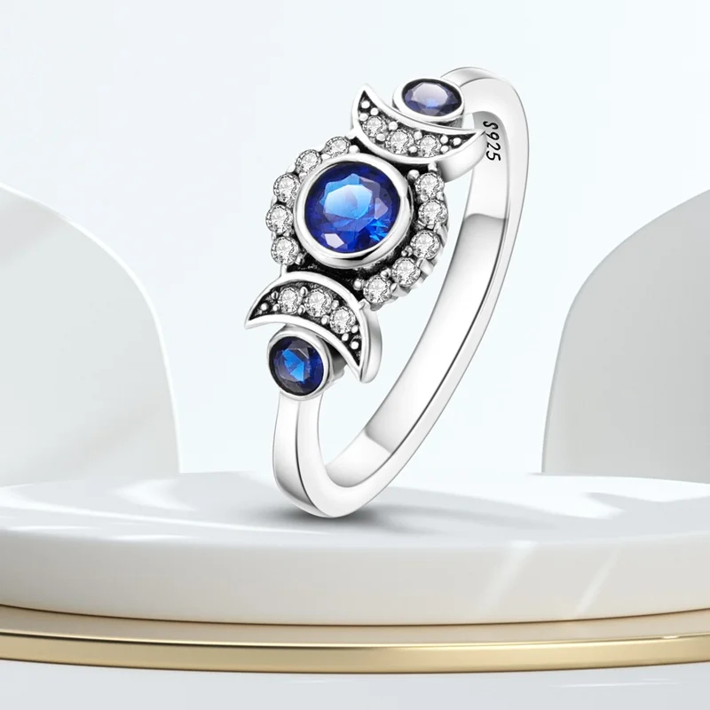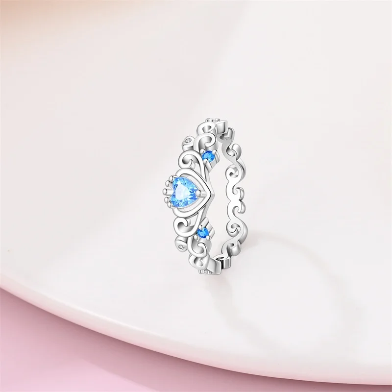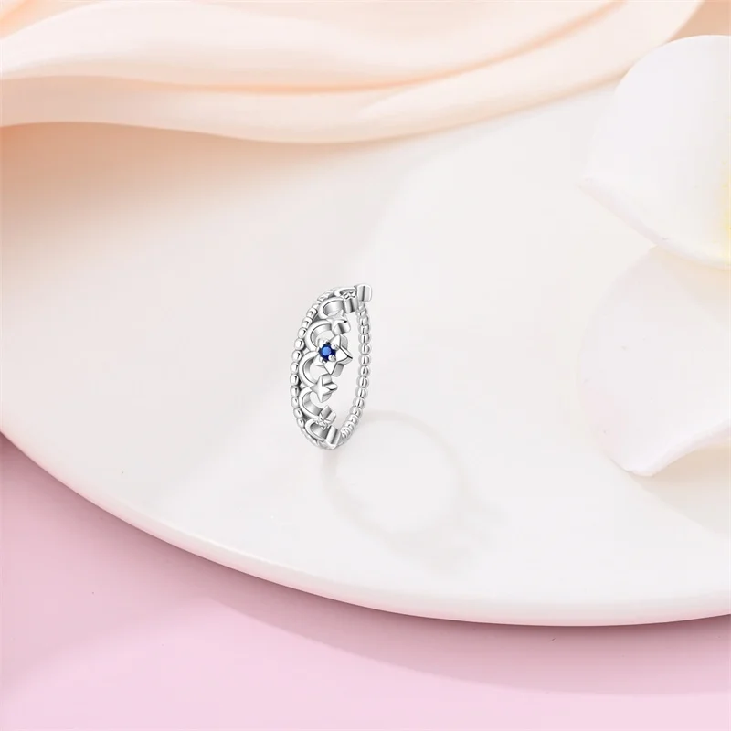 خاتم نسائي 925 فضة حلو القوس الباردة الأزرق على شكل قلب الزركون على شكل نجمة خاتم الزفاف مجوهرات رومانسية