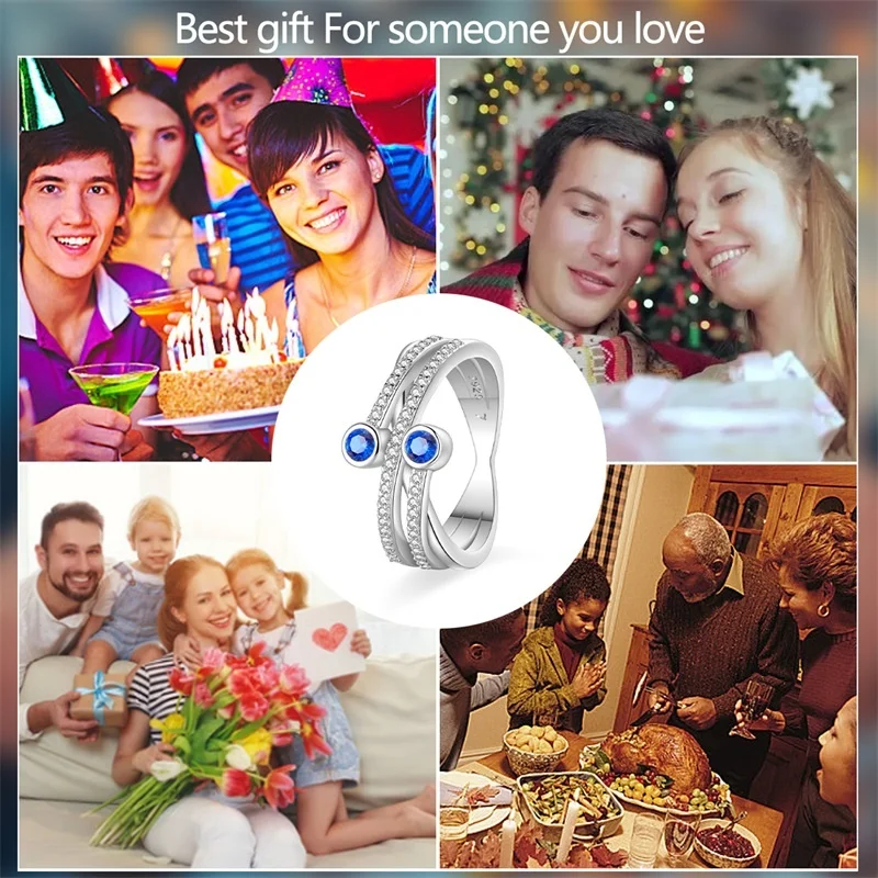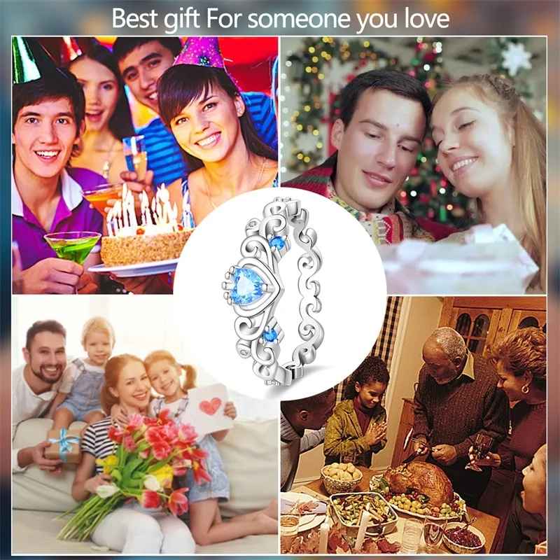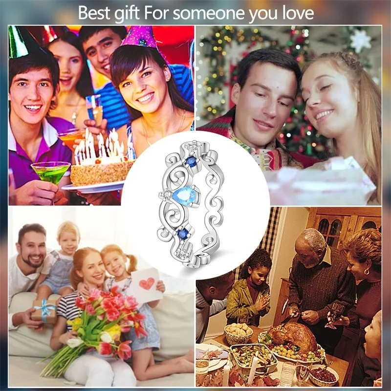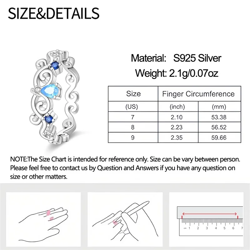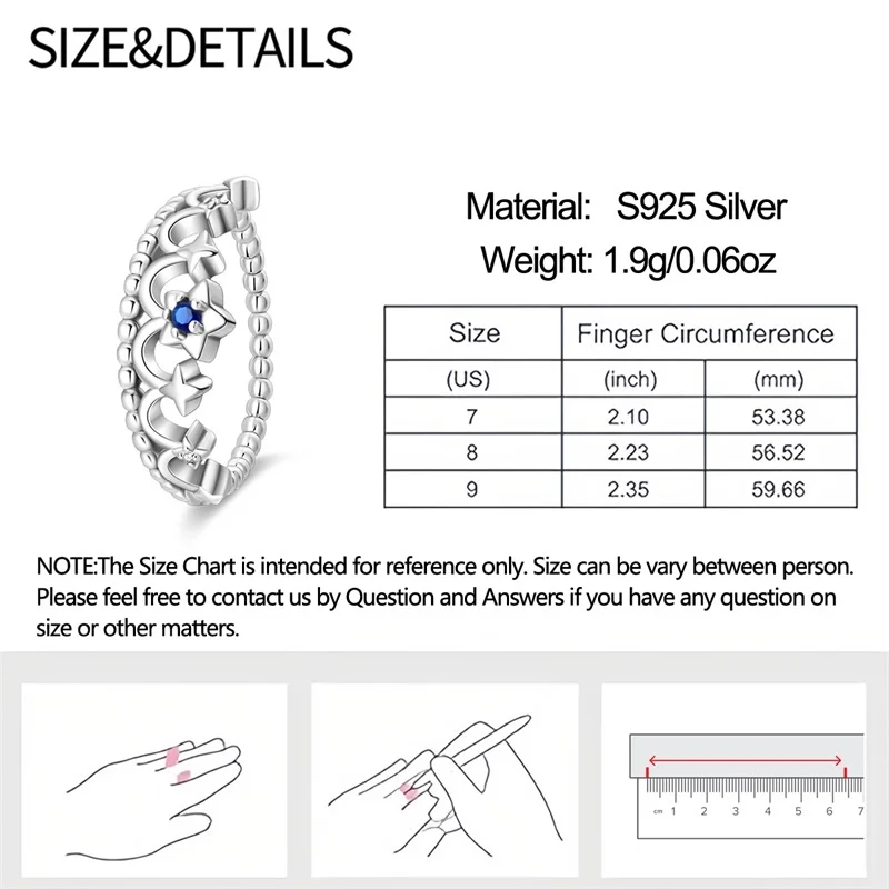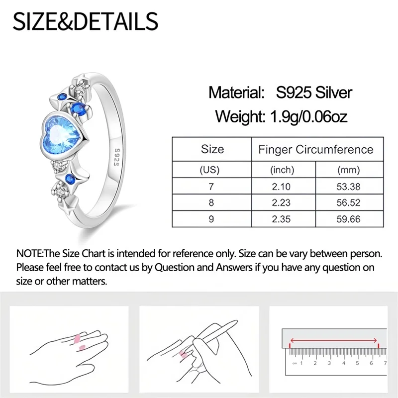6 مراجعات لـ خاتم نسائي 925 فضة حلو القوس الباردة الأزرق على شكل قلب الزركون على شكل نجمة خاتم الزفاف مجوهرات رومانسية