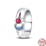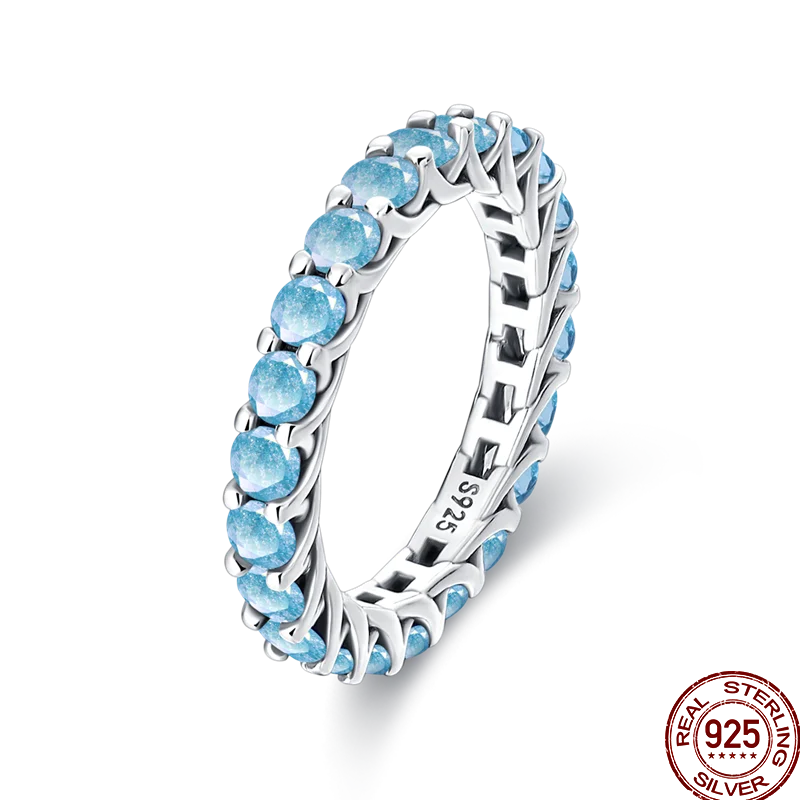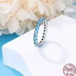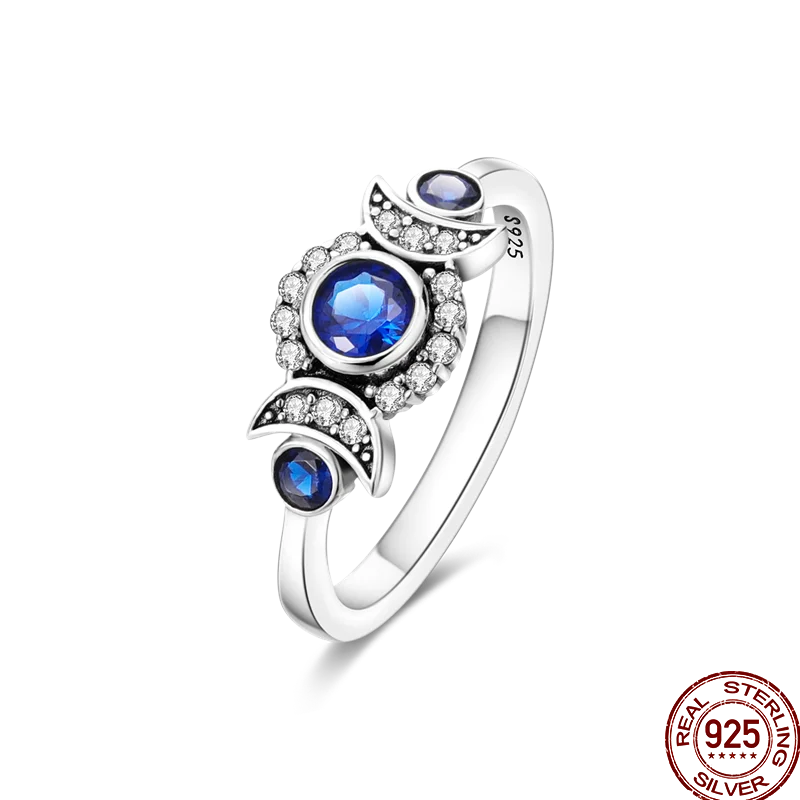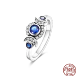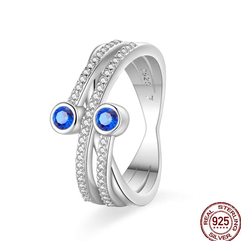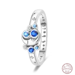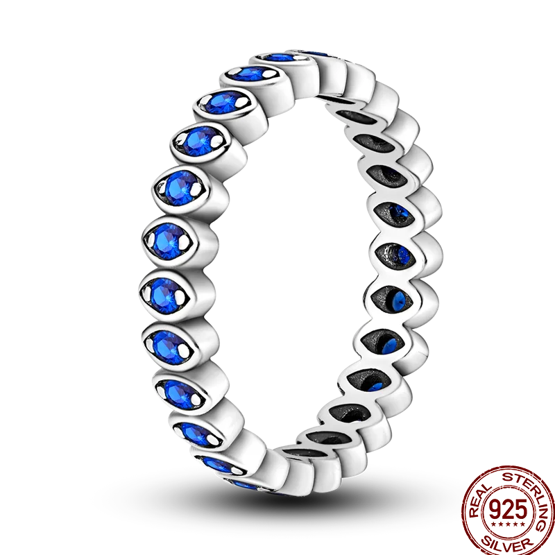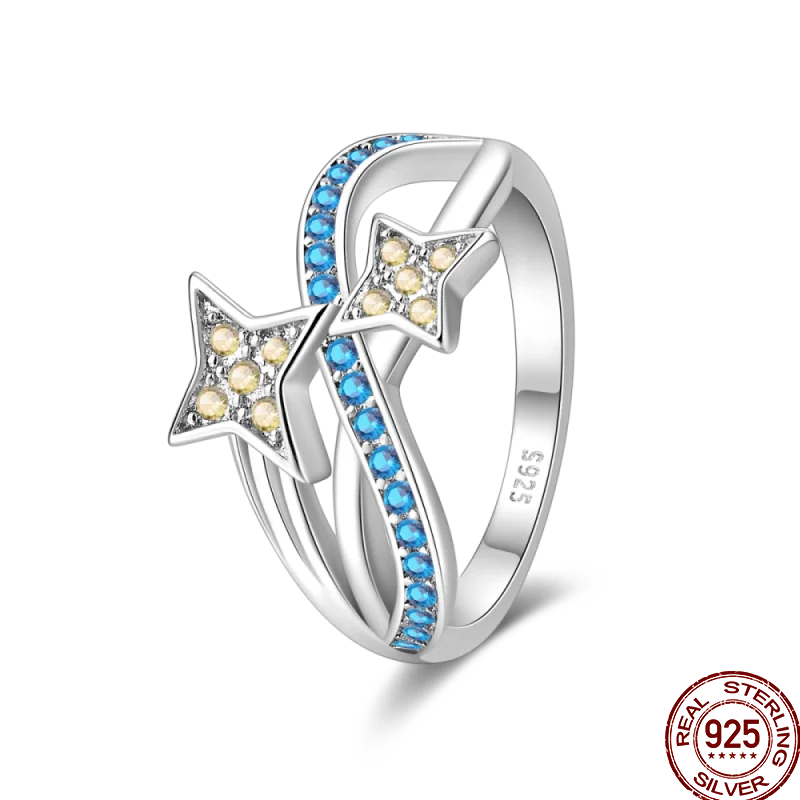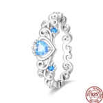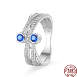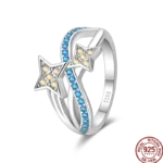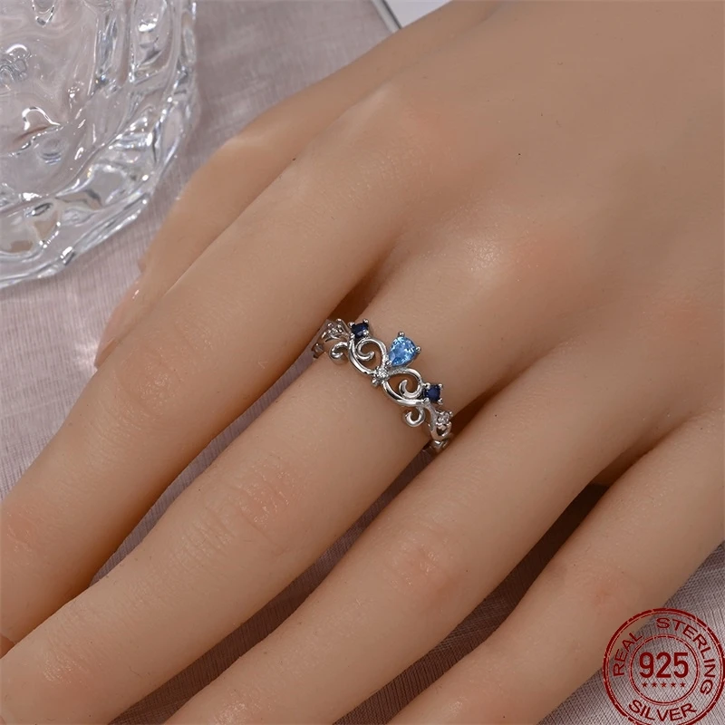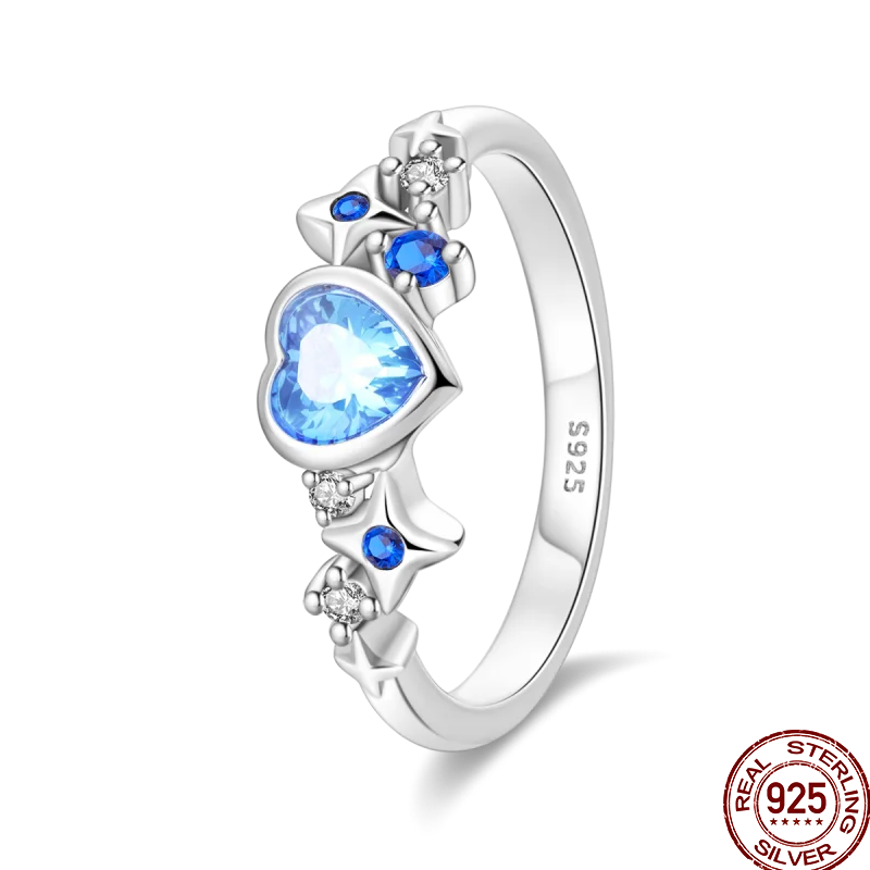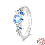 خاتم نسائي 925 فضة حلو القوس الباردة الأزرق على شكل قلب الزركون على شكل نجمة خاتم الزفاف مجوهرات رومانسية
