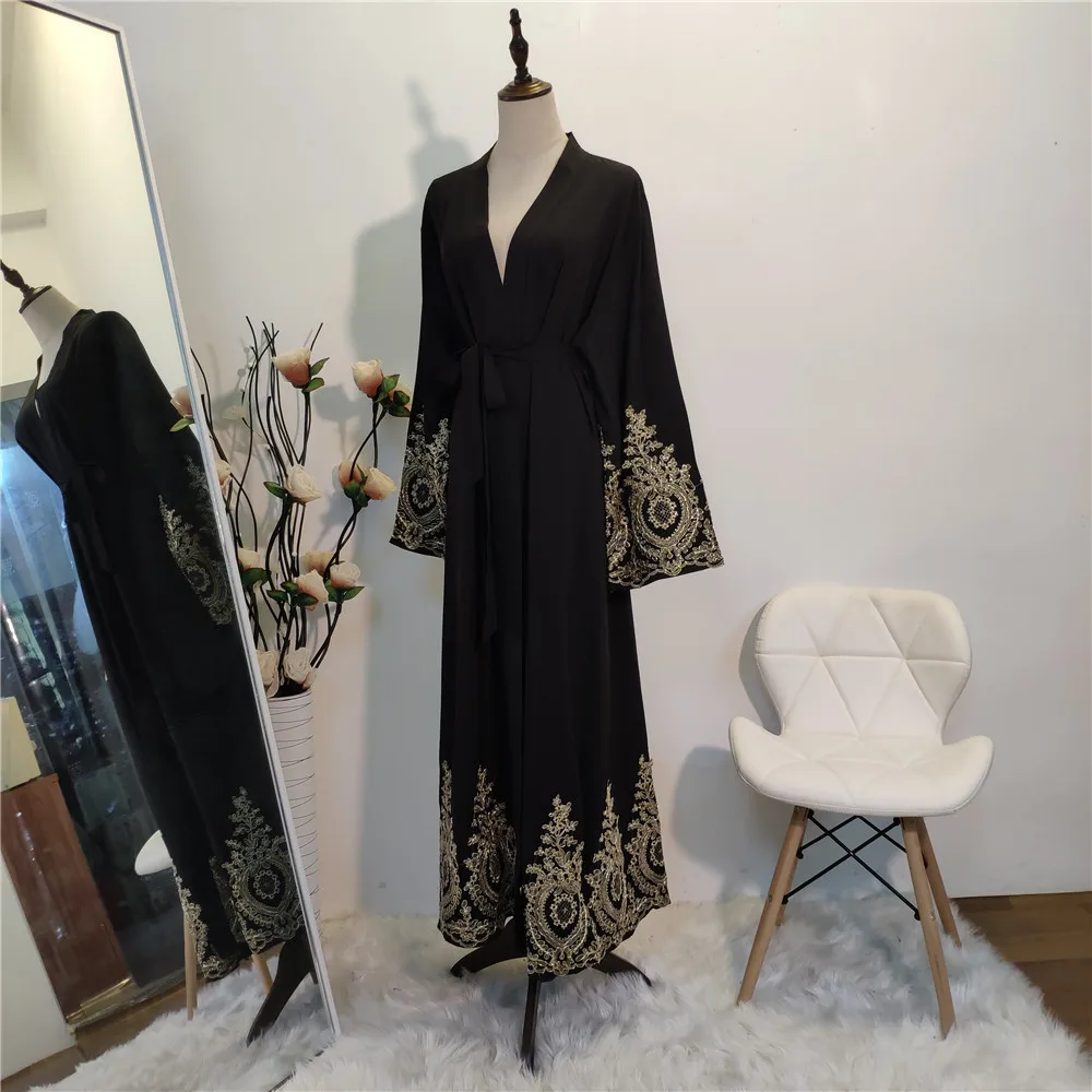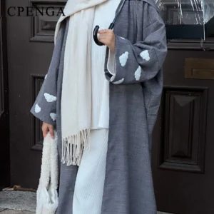 دبي نمط عباية مفتوحة المرأة مسلم قفطان كيمونو سترة طويلة فستان ماكسي عبايات جلباب أزياء تركية قفطان إسلامي