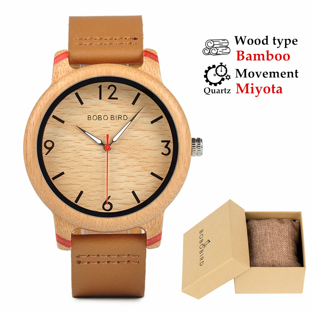 ساعات BOBO BIRD للرجال والنساء، ساعات مصنوعة من الخيزران، حركة كوارتز، شعار، خدمة توصيل مخصصة