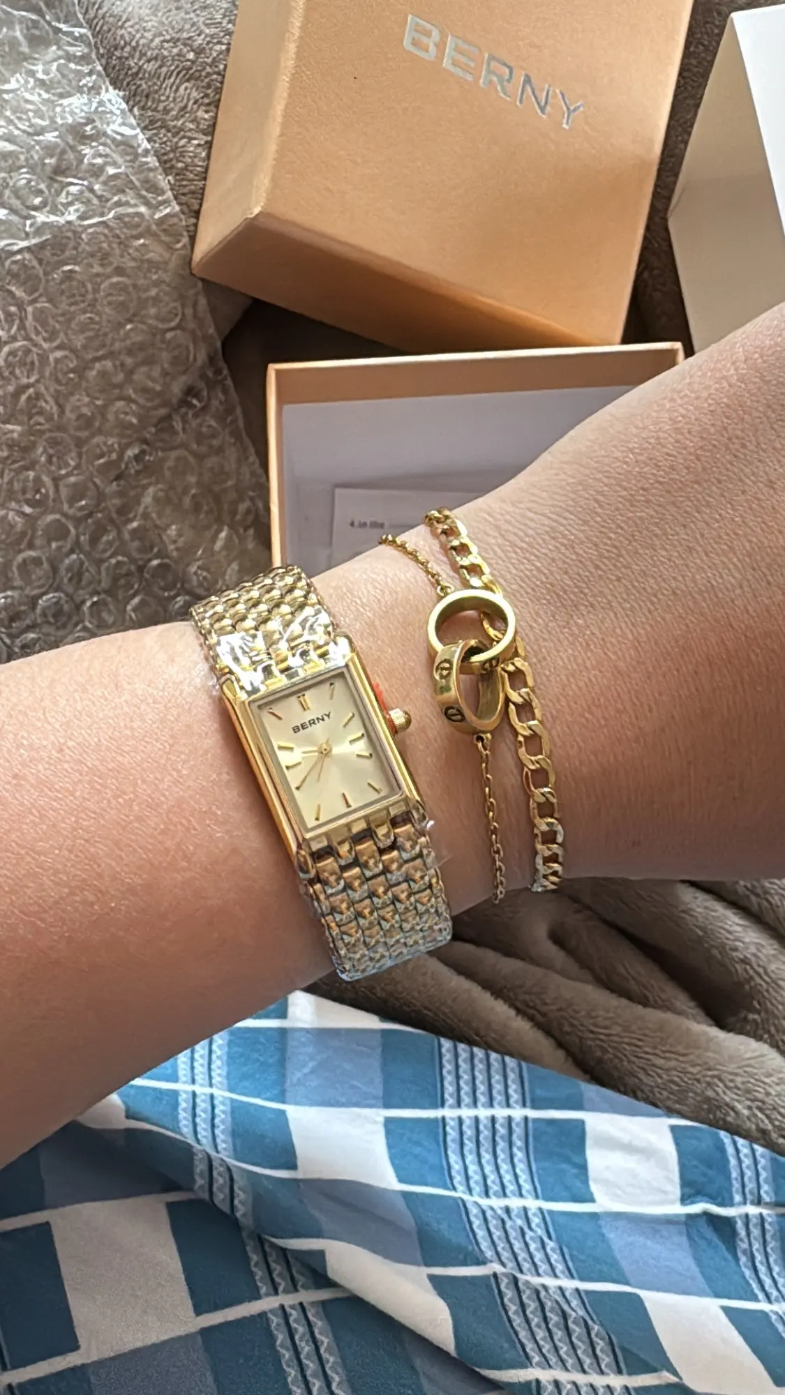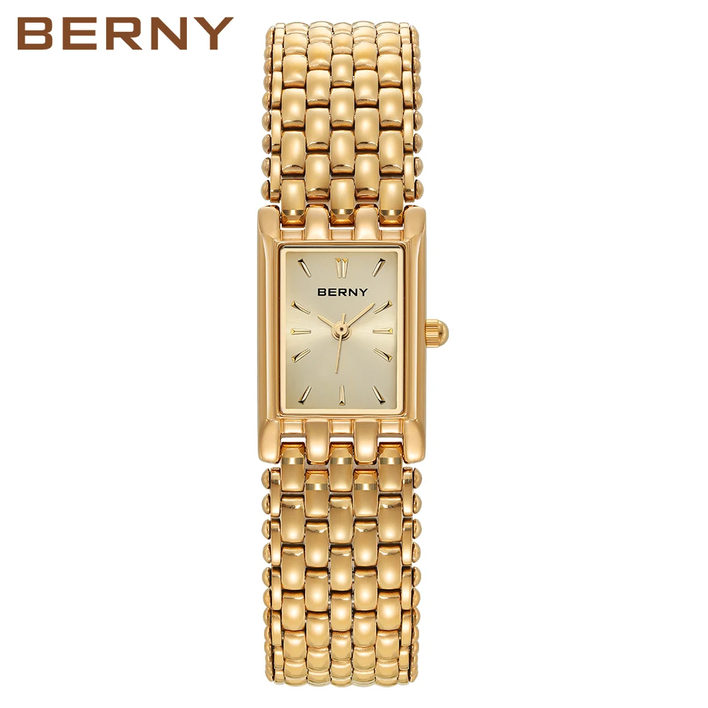 GET THE LOOK✨:BERNY Gold Watch for Women Luxury Women’s Wristwatch Waterproof Golden Female Clock Stainless Steel Fashion Quartz Ladies Watch