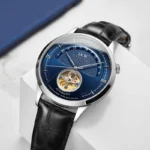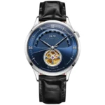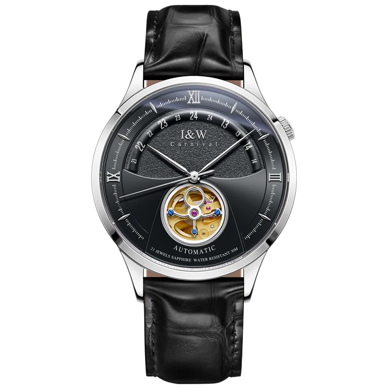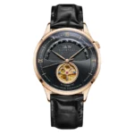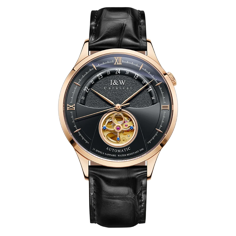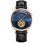 Original Japan MIYOTA 82S0 movement, Genuine sapphire crystal mirror, Hollow tourbillon, Unique crown, Italy cowhide leather strap, 30m Waterproof