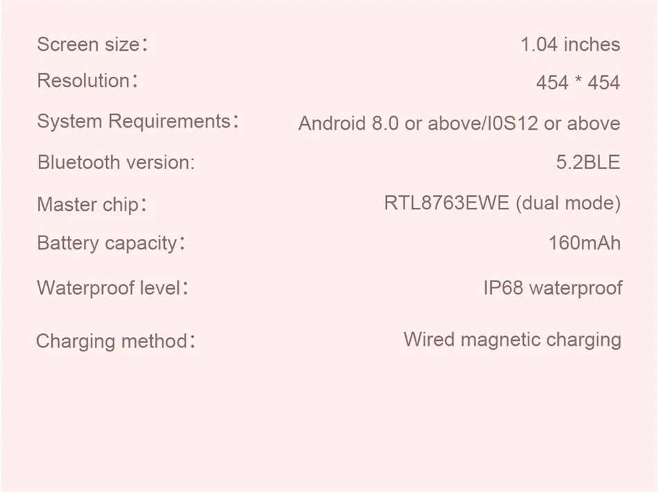 الشبكة الوضع: لا يوجد. بلد المنشأ: الصين (البر الرئيسي). ذاكرة الوصول العشوائي (RAM): أقل من 128 ميجابايت. ذاكرة القراءة فقط (ROM): أقل من 128 ميجابايت. الكاميرا الخلفية: لا يوجد. الدقة: 454 × 454. بطاقة SIM متاحة: لا. مادة الشاشة: style=”color:#333″>AMOLED