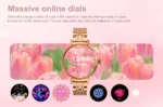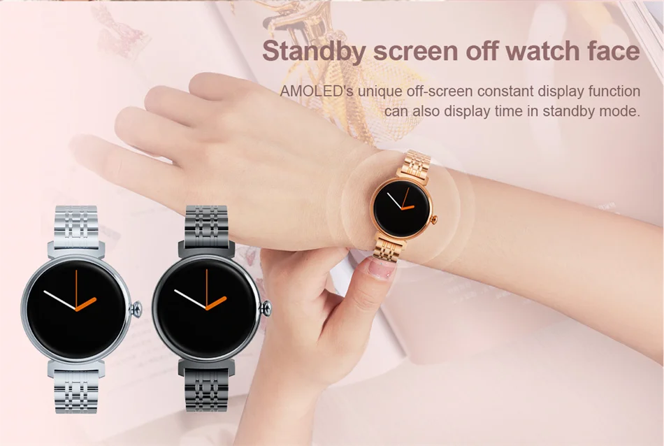 ساعة ذكية أنيقة للسيدات بشاشة AMOLED مقاس 1.04 بوصة، تعرض الشاشة دائمًا، مزودة بتقنية بلوتوث لإجراء المكالمات، هيكل معدني، وشاشة صغيرة.