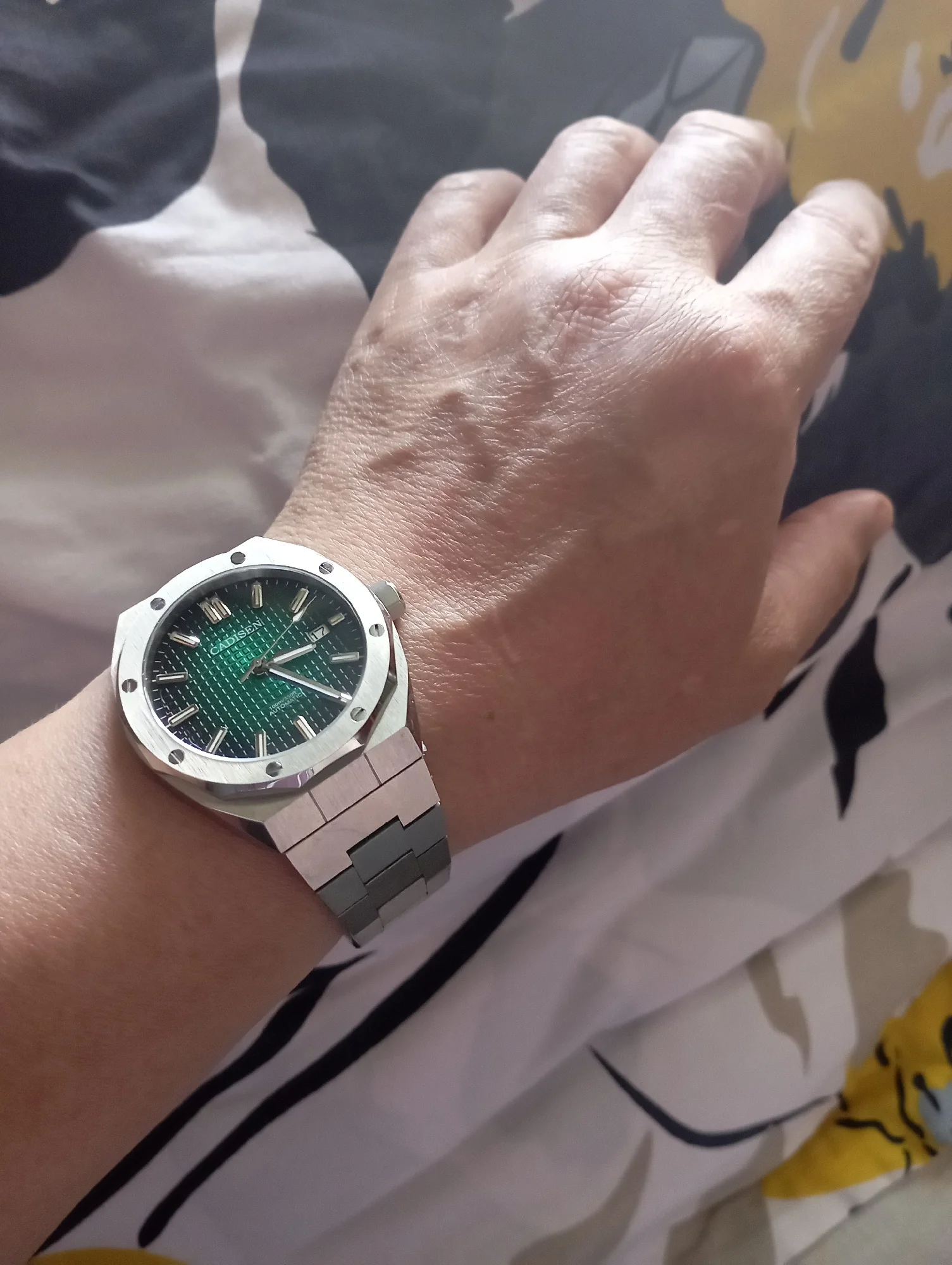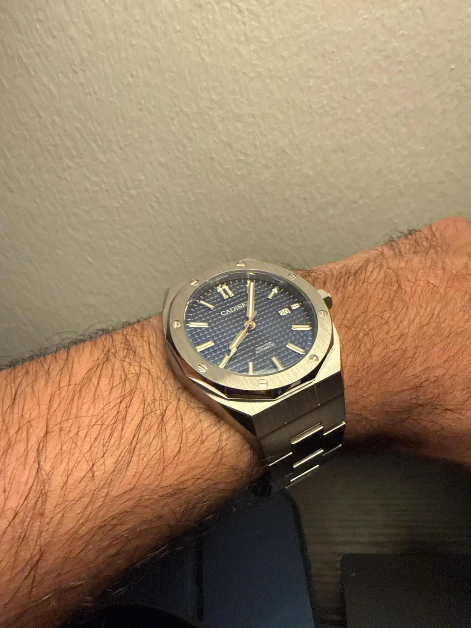 راضٍ جدًا عن عملية الشراء. ساعة Cadisen بقطر 42 مم باللون الأزرق مع سوار معدني تفوق توقعاتي. يتميز بتصميم أنيق، وزن جيد، وتشطيبات تشعر بالجودة العالية. يعمل بشكل مثالي ووصل معبأ بشكل جيد. تجربة التسوق كانت جيدة جدًا: الشحن ضمن الإطار الزمني والتواصل الواضح من البائع. موصى به بالكامل.