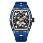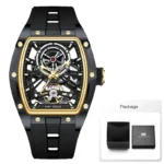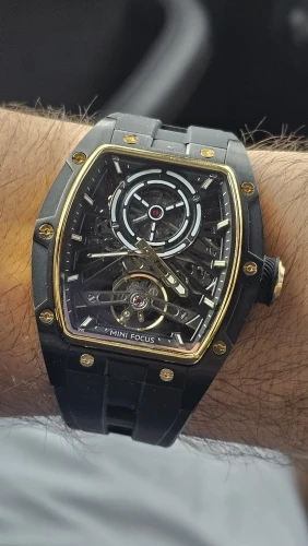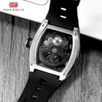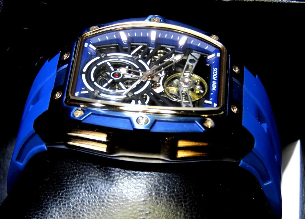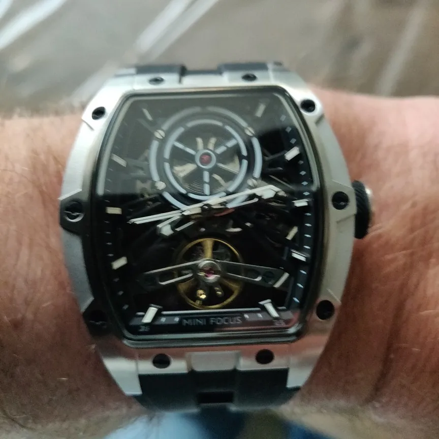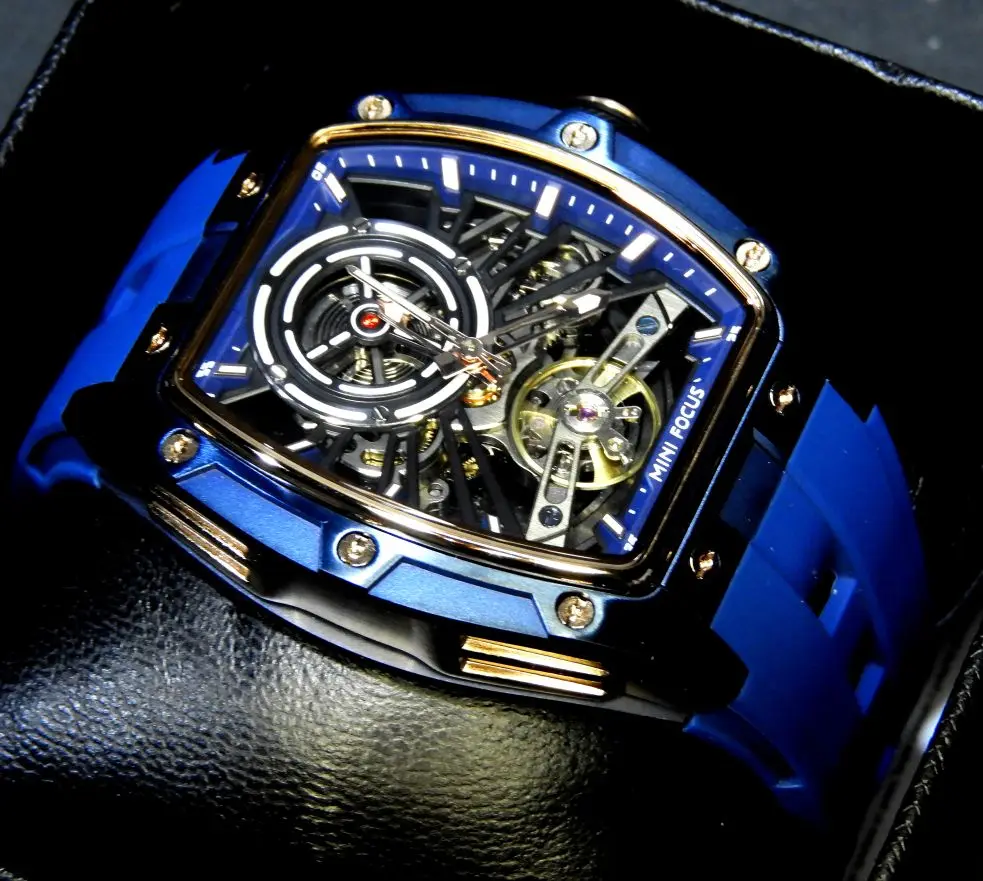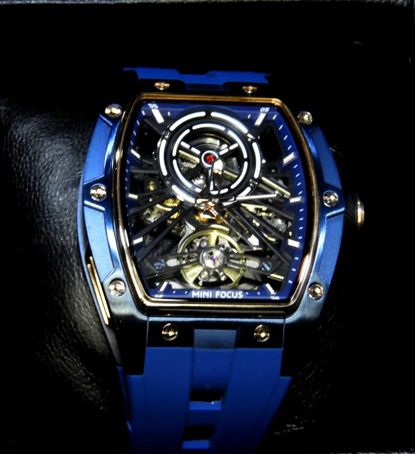 ساعة يد رجالية من MINI FOCUS، ساعة ميكانيكية أوتوماتيكية مقاومة للماء باللون الأسود مع أيدي مضيئة وحزام من السيليكون ومينا تونيو