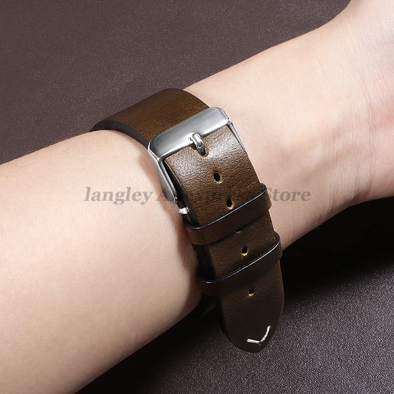 سوار ساعة جلدي عتيق من الجلد المعالج بالشمع الزيتي، متوفر بمقاسات 18 مم، 19 مم، 20 مم، 21 مم، 22 مم، و24 مم، مناسب لساعات أوميغا وسيكو، مصنوع من جلد البقر المخيط.