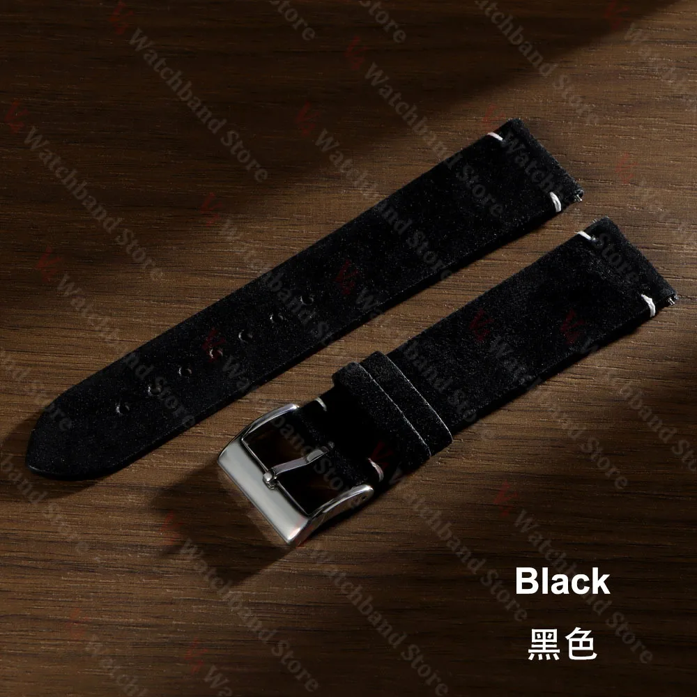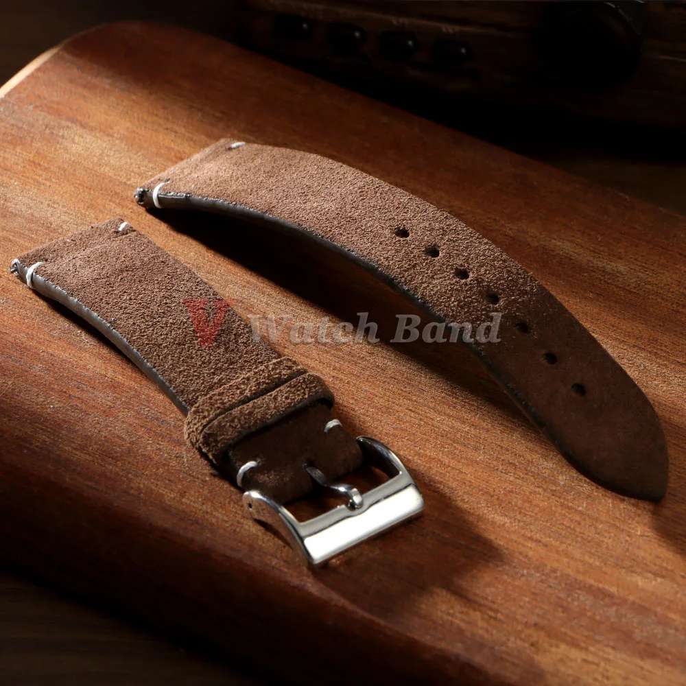 رقم الموديل: سوار ساعة عتيق من جلد الغزال عالي الجودة، 20 مم و22 مم