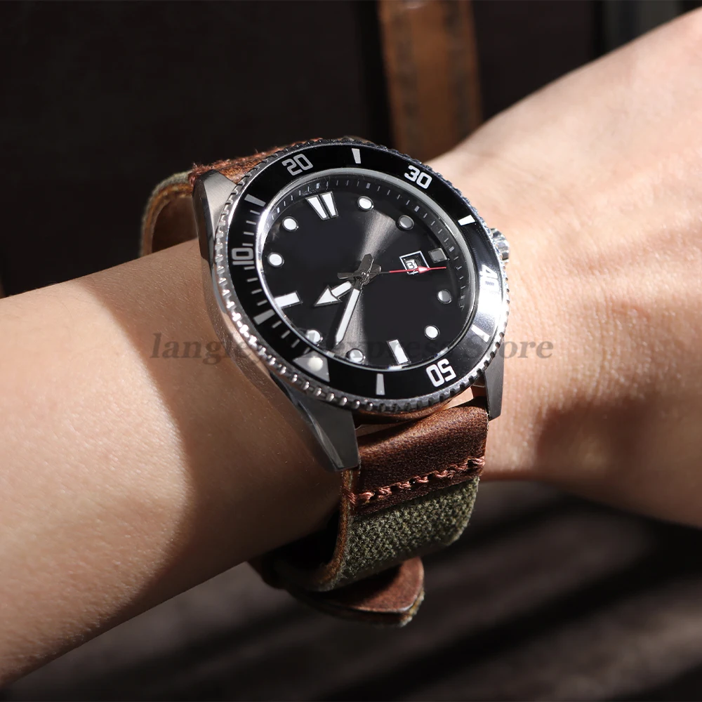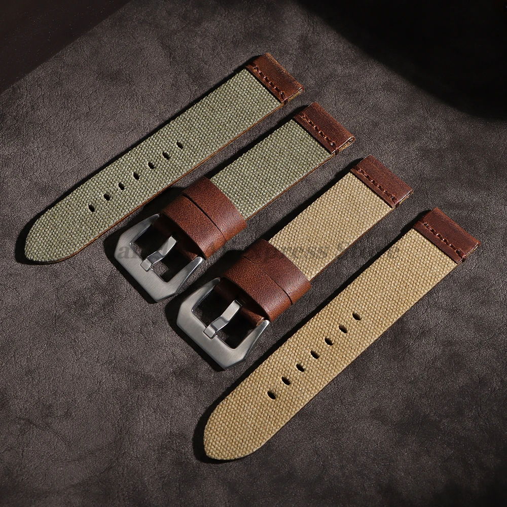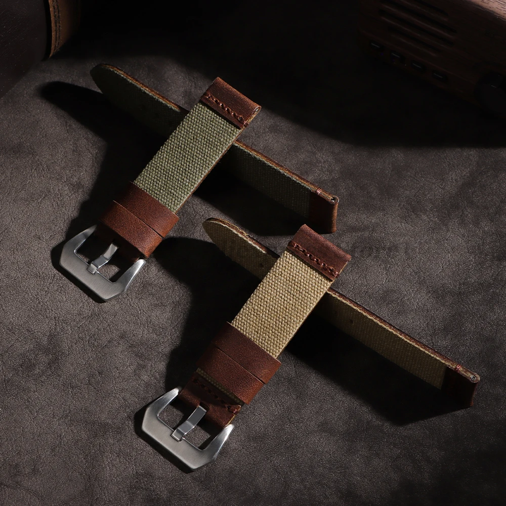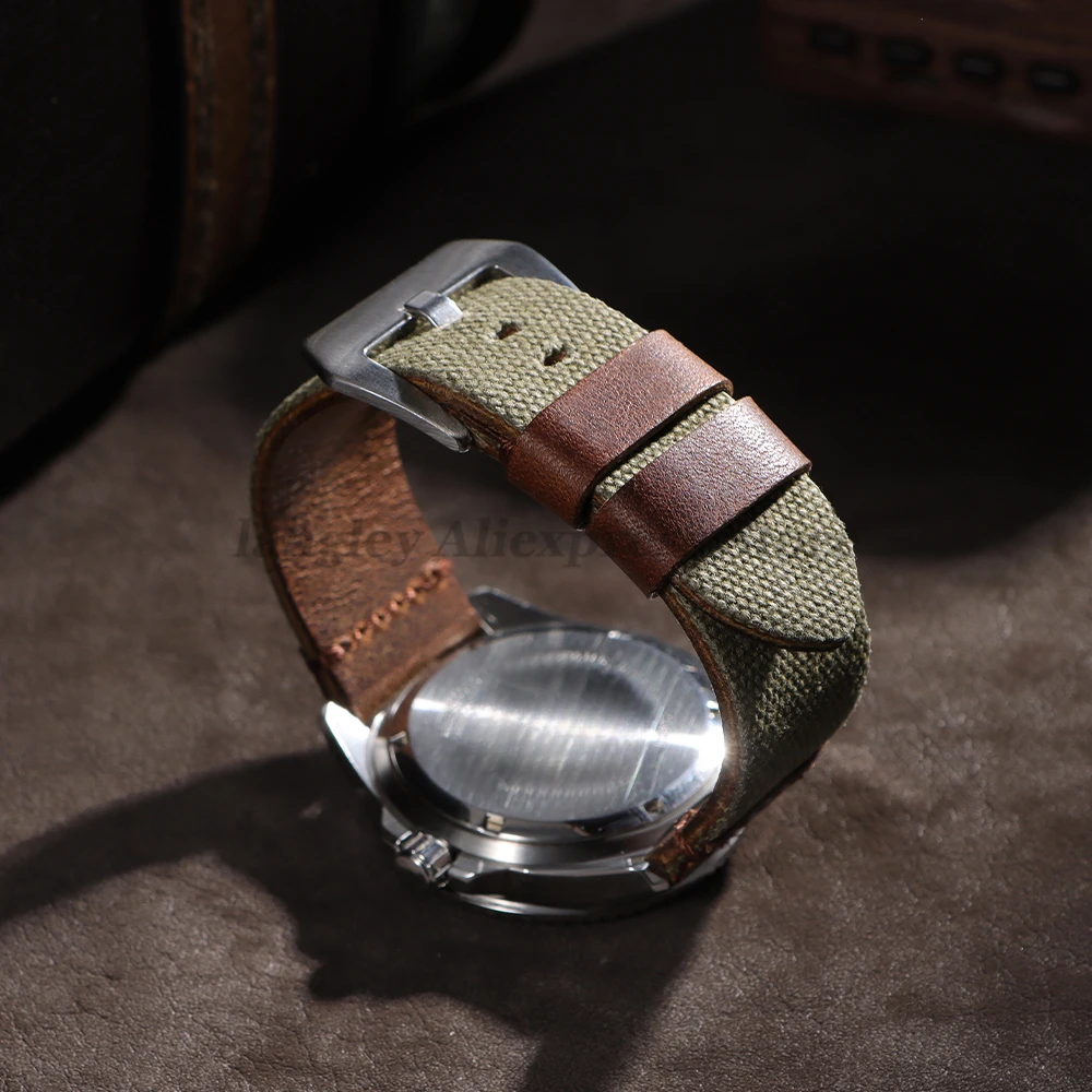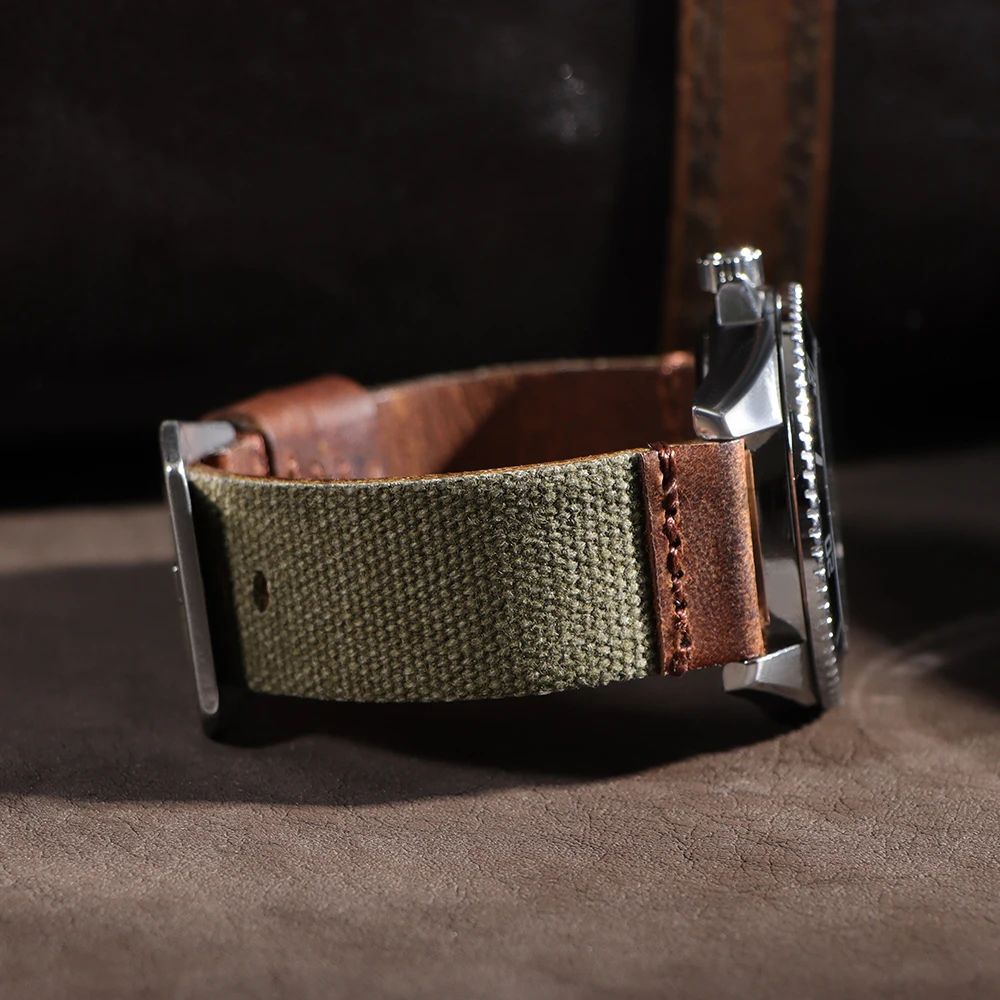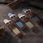 سوار ساعة مصنوع يدويًا من القماش والجلد