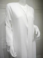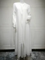 سيساكيا فاشن دبي، فستان ماكس مزين بلوحة من الدانتيل الجيبور، مع حجاب، عباية إسلامية مفتوحة سادة، موديل 2025