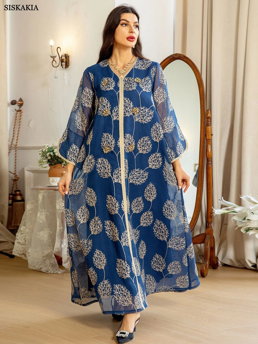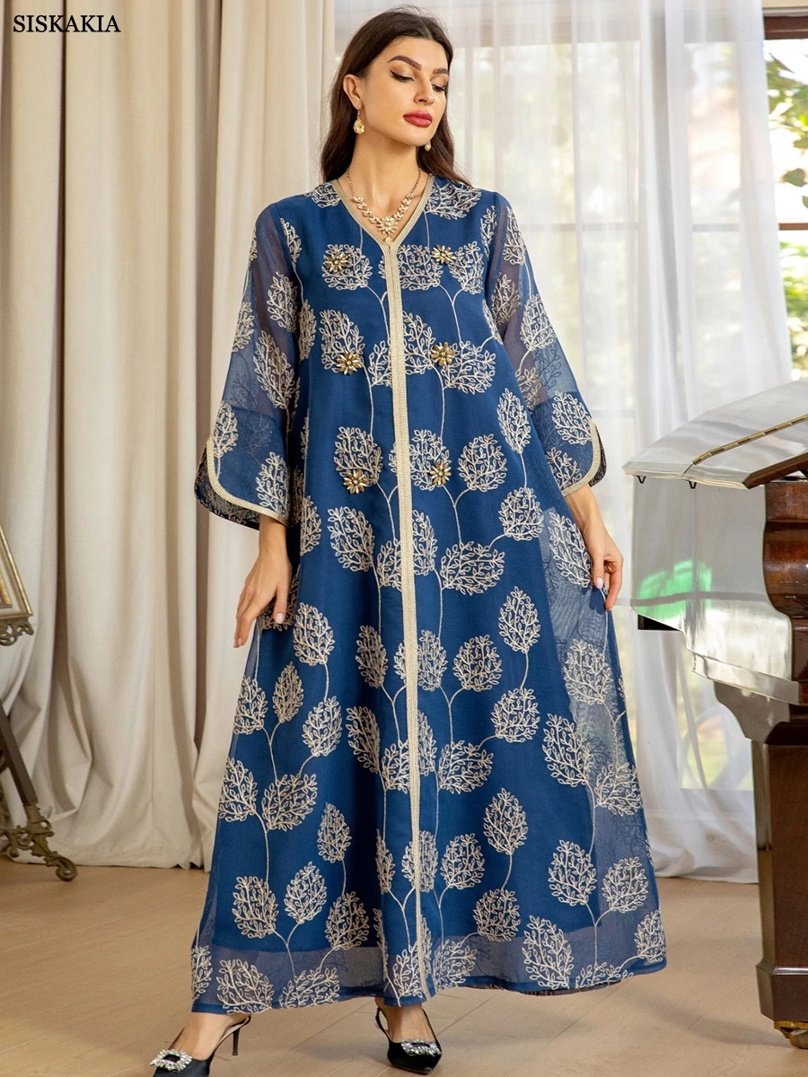 سيسكاكيا-فستان طويل للمرأة المسلمة ، شبكة ، تطريز ، ماس ، أنيق ، ملابس حفلات ، قفطان مغربي ، المملكة العربية السعودية